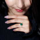 Make a statement with this exquisite Lab Created Emerald Ring, which is suitable for both everyday wear and special occasions. It features an 8 MM cushion-cut Lab Created Emerald at the heart of the ring, accented with round Moissanite side stones on ring, creating a timeless piece of jewelry that adds a touch of elegance to your unique style. This Cushion Cut Ring beholds the luxurious shine of AAAA quality Lab Grown Emerald with D-VS1 quality Moissanite. This ring radiates a green hue which represents timeless beauty and elegance. Make your big day memorable with this Emerald Engagement Ring.