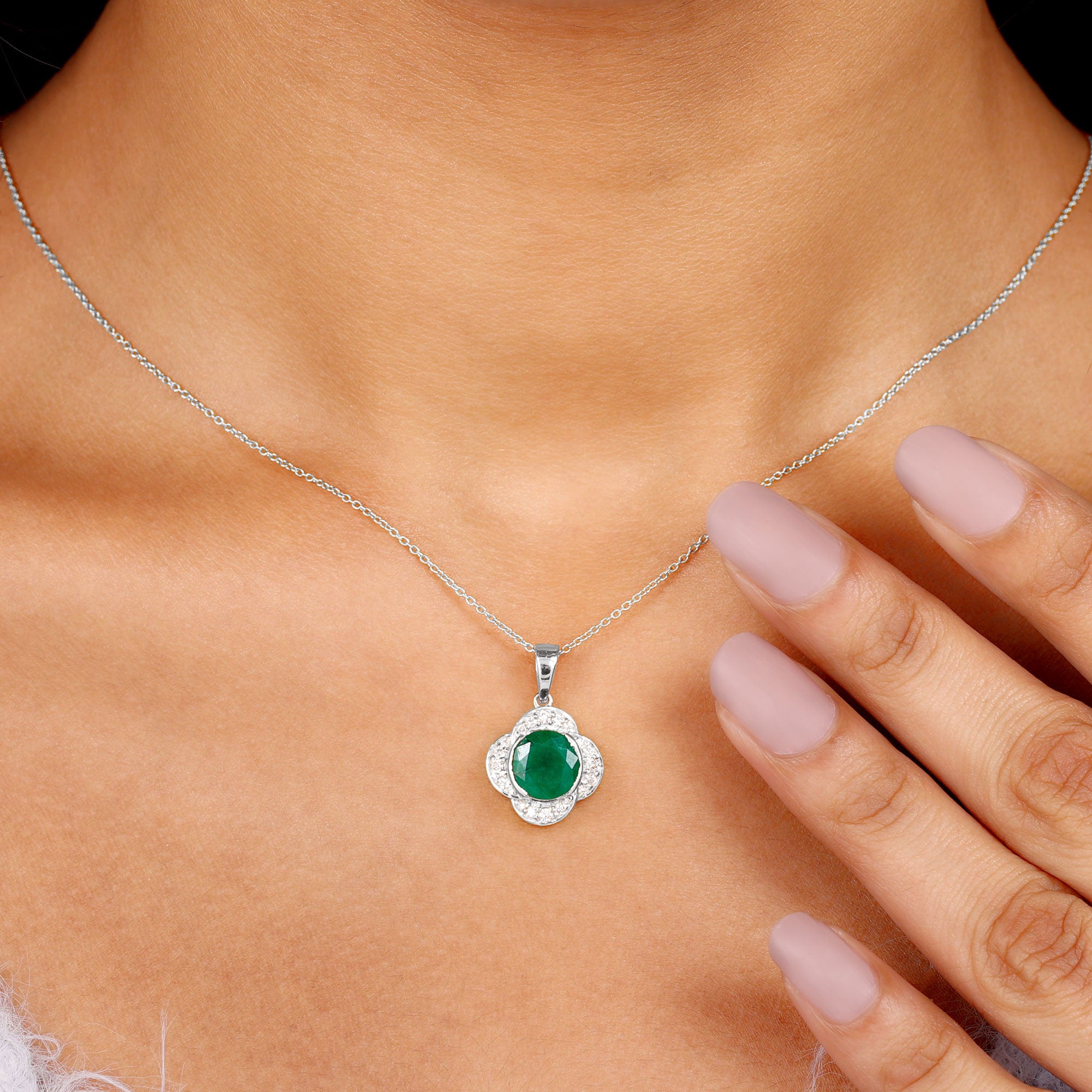 Lab Grown Emerald and Diamond Flower Necklace For Her
