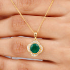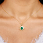 Cherish every moment with our Lab Grown Emerald Pendant Necklace, precisely designed to capture attention. It features an 8 MM Round Shaped Lab Created emerald securely held in a half bezel setting encircled with a halo of smaller diamonds that creates a captivating contrast. This Flower Pendant Necklace is suspended with a bail that provides a carefree wearing all day and night. Whether looking for a versatile accessory for yourself or just want to surprise someone special, this Halo Necklace is a perfect piece you must choose.