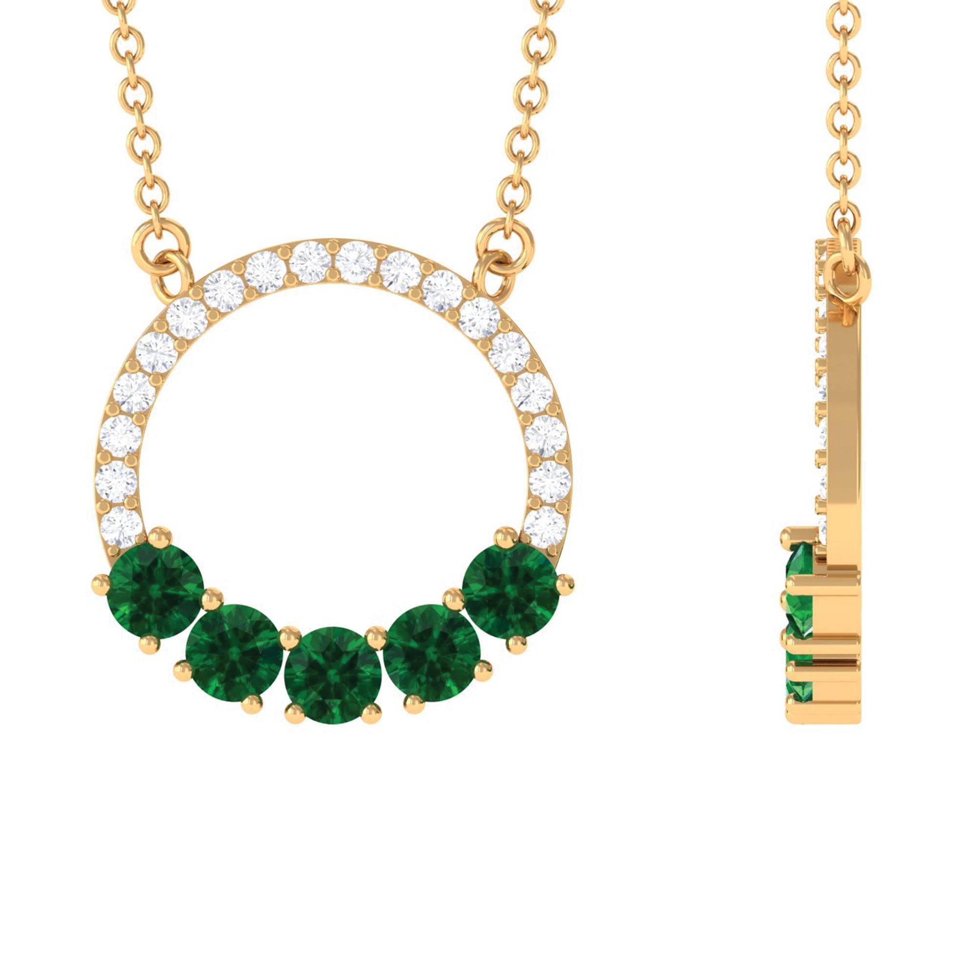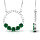 Lab Grown Emerald and Diamond Open Circle Necklace