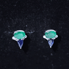 Celebrate your story with the beauty of two birthstones in one timeless design. These stunning Emerald and Sapphire Earrings are more than just jewelry, they symbolize the bond between two souls. Featuring a 5X7 MM oval shaped lab created emerald and a 4X6 MM pear shaped lab grown blue sapphire set in secure prong setting. A touch of sparkle comes from the dainty round moissanite stones, adding just the right amount of brilliance. Crafted in 14K White Gold Plated Silver with lab made stones, these Two Birthstone Earrings are not only luxurious but also eco-friendly. These Art Deco Earrings come with a certificate of authenticity for gemstones and is packaged in a premium velvet pouch.