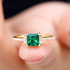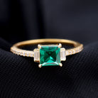This Past Present Future Engagement Ring is a beautiful blend of elegance and meaning, designed to capture the essence of your love story. The striking 8 mm Princess Cut Lab Created Emerald set in Claw Setting takes center stage, symbolizing hope, growth, and harmony. It is flanked by two Baguette Shape Moissanite stones, adding extra sparkle and a touch of modern sophistication. For extra sparkle, dainty Round Shape Moissanite stones are set over the band, enhancing the overall brilliance. This mesmerizing 3 Stone Engagement Ring holds special meaning, representing the past you have shared, the present moment of your engagement, and the bright future that lies ahead together. This Lab Grown Emerald Ring is a timeless symbol of enduring love and deep connection. This Princess Cut Emerald Ring ensures a perfect fit and comfortable wear for daily elegance. It comes carefully packaged in a beautiful jewelry box, ready to be gifted and cherished. Whether it is for a proposal, anniversary, or a special celebration, this Princess Cut Engagement Ring is the perfect choice for your beloved. Its meaningful symbolism makes it a piece she will always keep close to her heart, a constant reminder of your unwavering love.