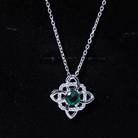 Lab Grown Emerald Floral Pendant Necklace In Silver