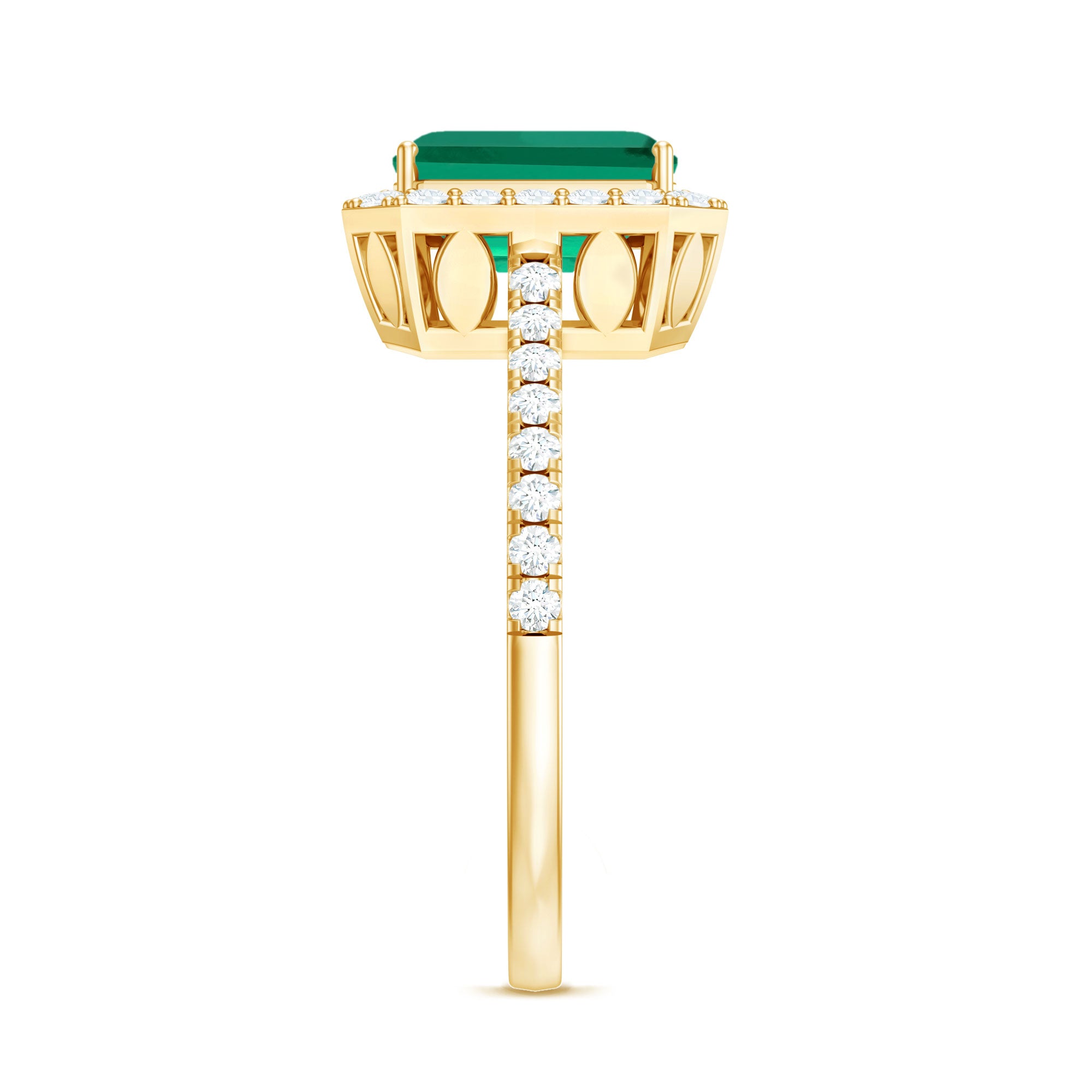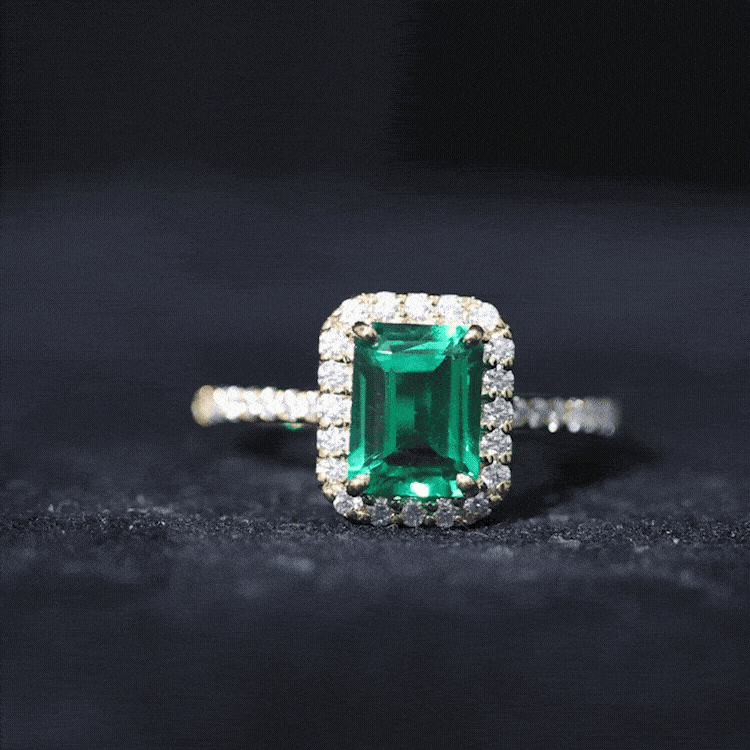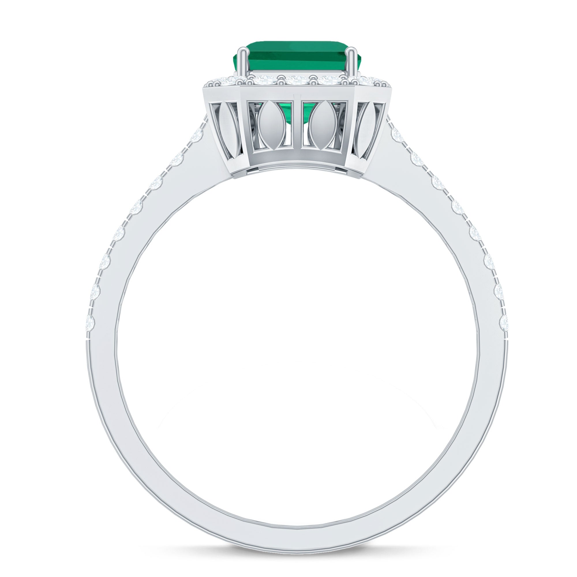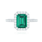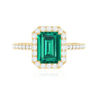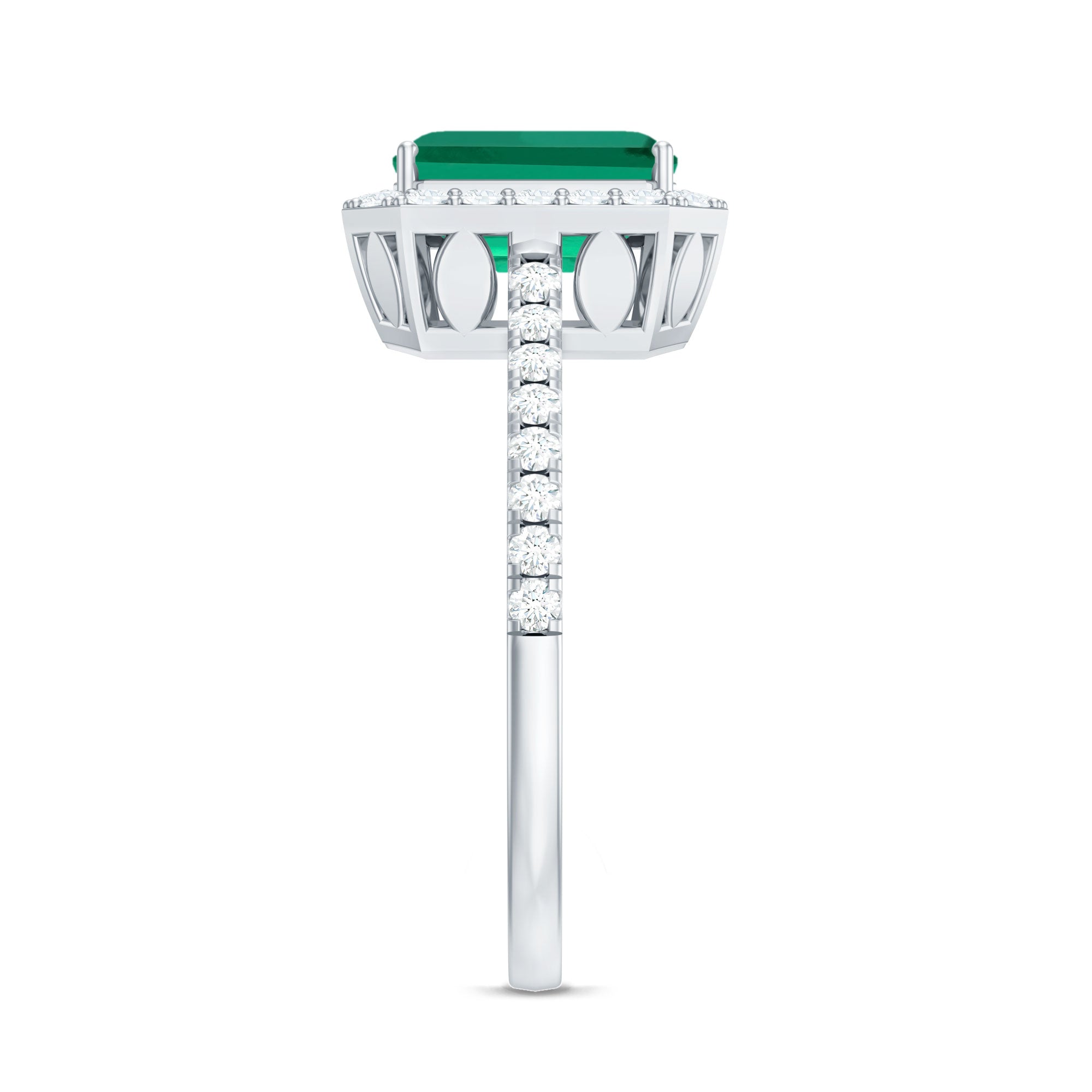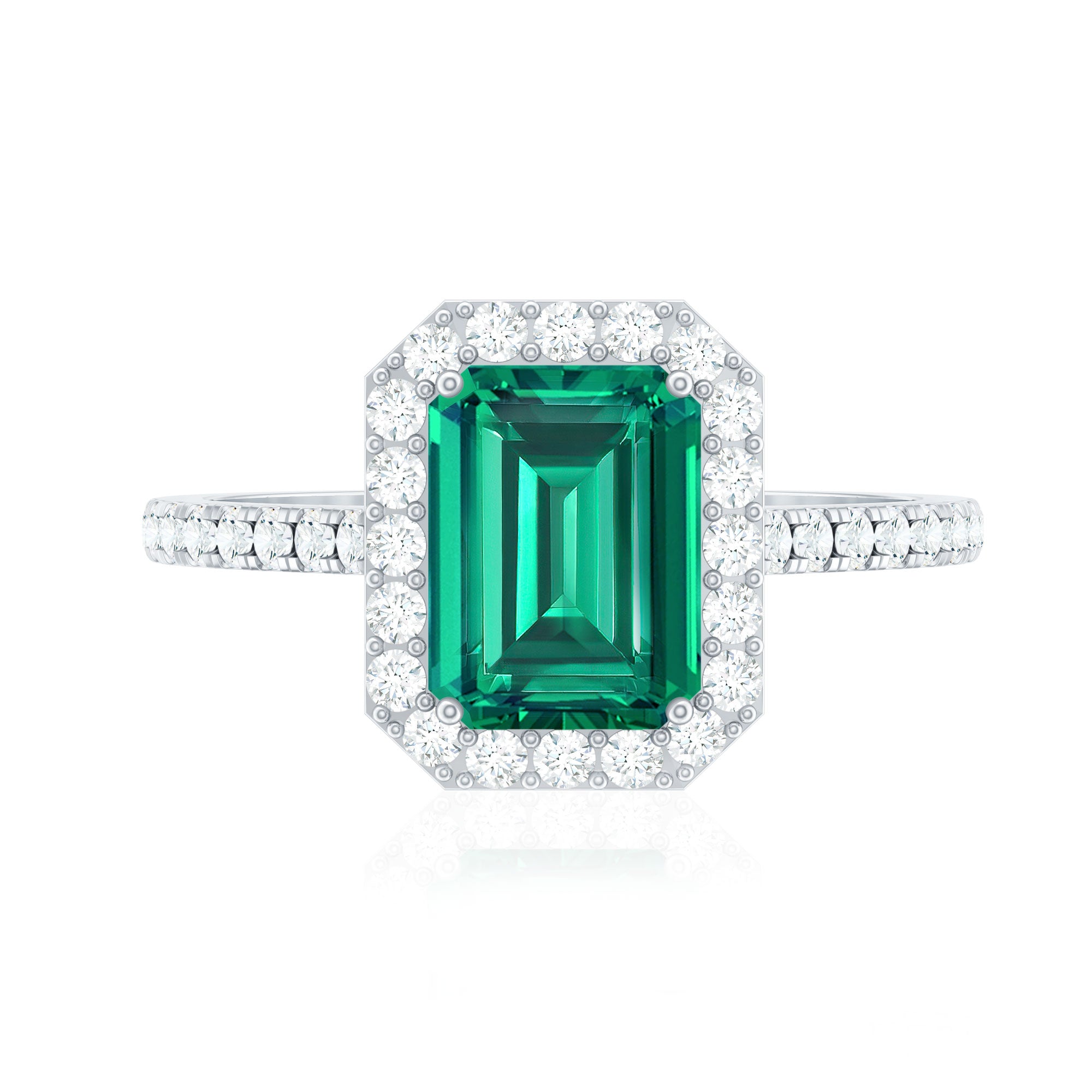 Lab Grown Emerald Halo Engagement Ring With Real Diamond