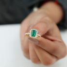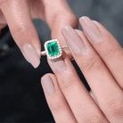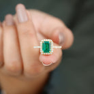 Lab Grown Emerald Halo Engagement Ring With Real Diamond