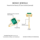 This Halo Engagement Ring is a stunning choice for your special day, featuring a 6X8 MM bright Octagon Cut Created Emerald securely placed in Prong Setting at its center, surrounded by a Halo of Diamond Stones. It is sure to make a gorgeous statement on your finger. This Emerald Cut Engagement Ring is the true epitome of regal elegance which is the luxurious piece of jewelry that beholds the shine of HI-SI Diamond and AAAA quality lab created emerald. The vibrant hues of this ring symbolize loyalty and prosperity in the relationship which makes it perfect for marking the beginning of a new chapter of the relationship. This Certified Emerald Ring will be delivered to you in the signature jewelry box.