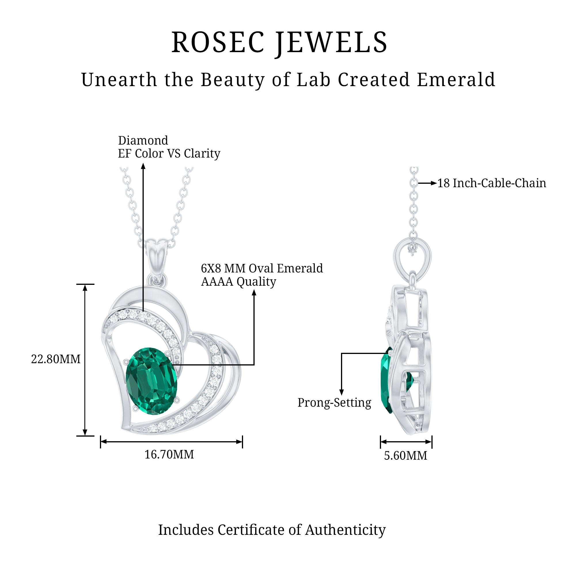 Love blooms in the heart of this mesmerizing Heart Pendant Necklace, adorned with a slantly placed 6x8 mm Oval Shape Emerald. Meticulously crafted, the Minimal Necklace is highlighted by shimmering Lab Grown Diamond gemstones. A testament to timeless elegance, this lab grown Emerald and Diamond Necklace reflects the commitment to sustainable luxury by Rosec Jewels. Elevate your style with this symbol of love, where innovation meets sophistication.