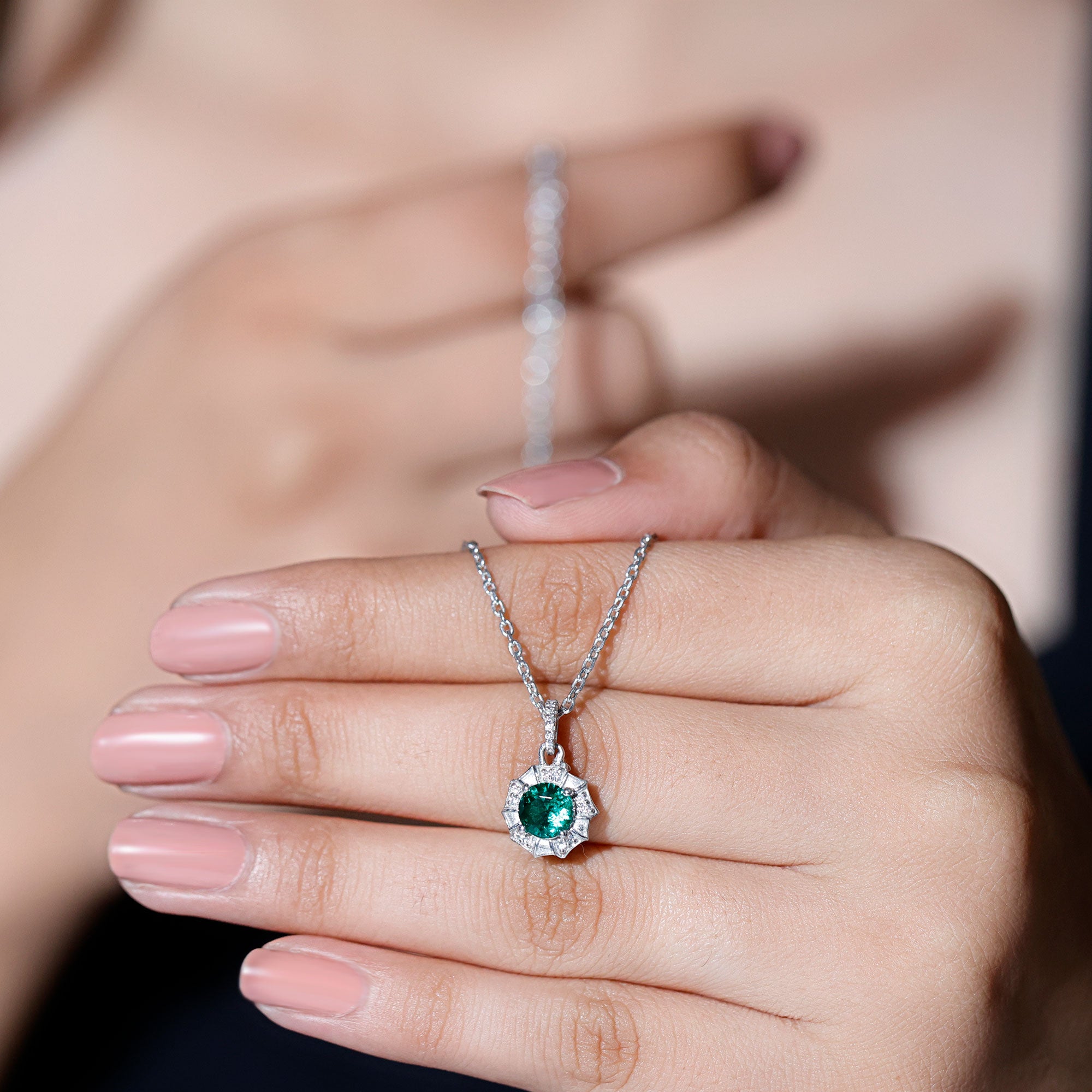 Lab Grown Emerald Moissanite Vintage Inspired Necklace with Chain