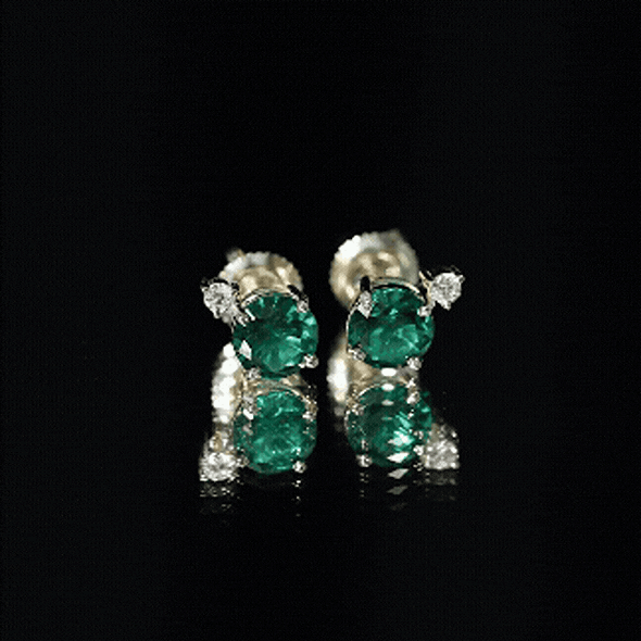 Lab Grown Emerald Screw Back Earrings With Diamond