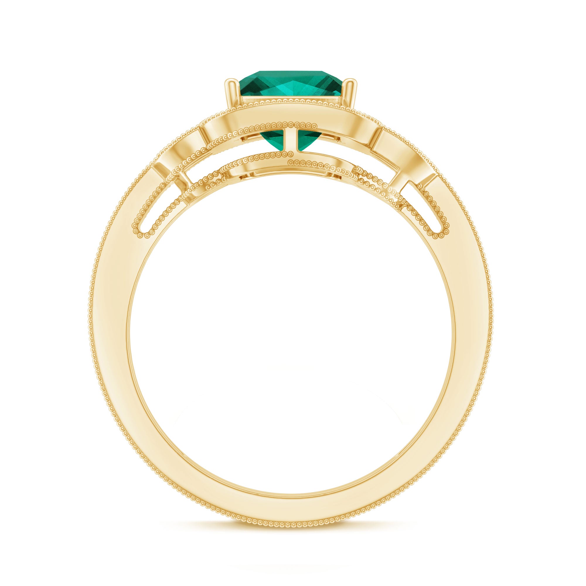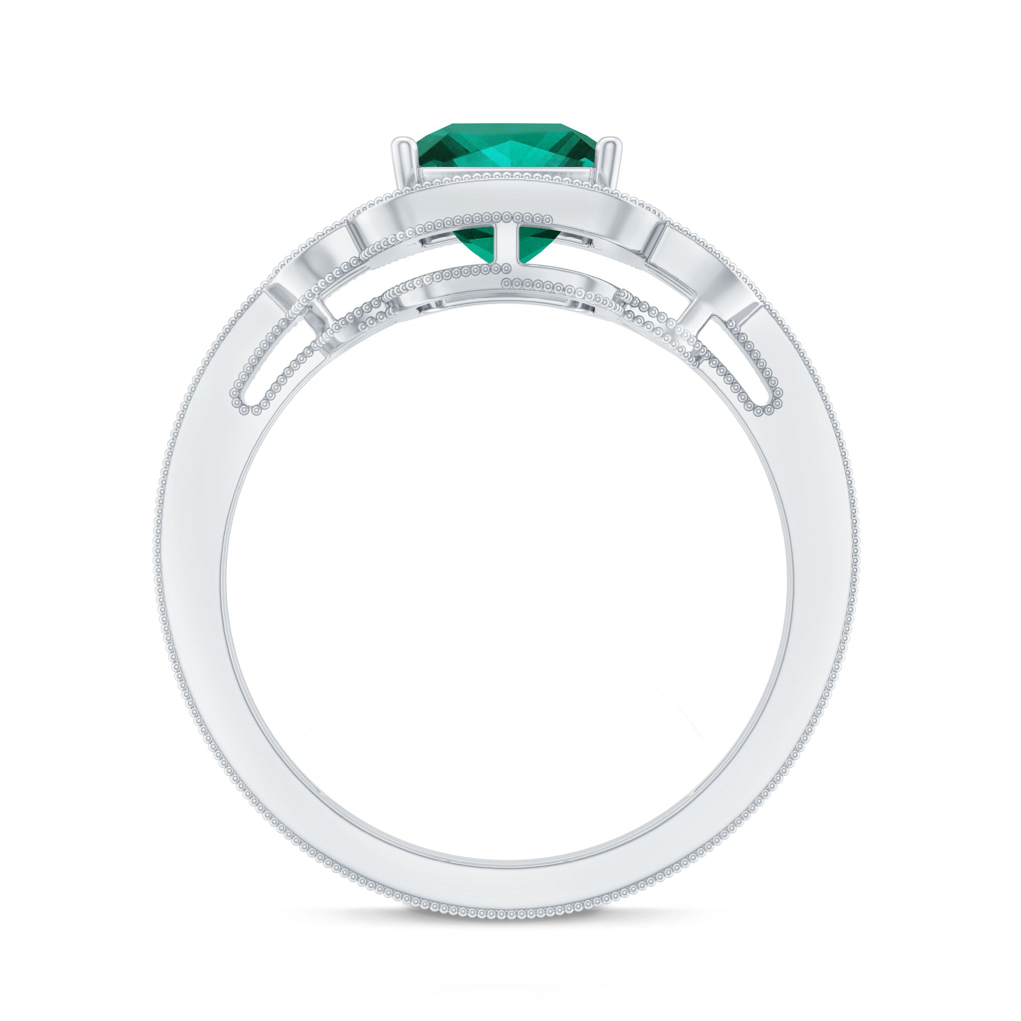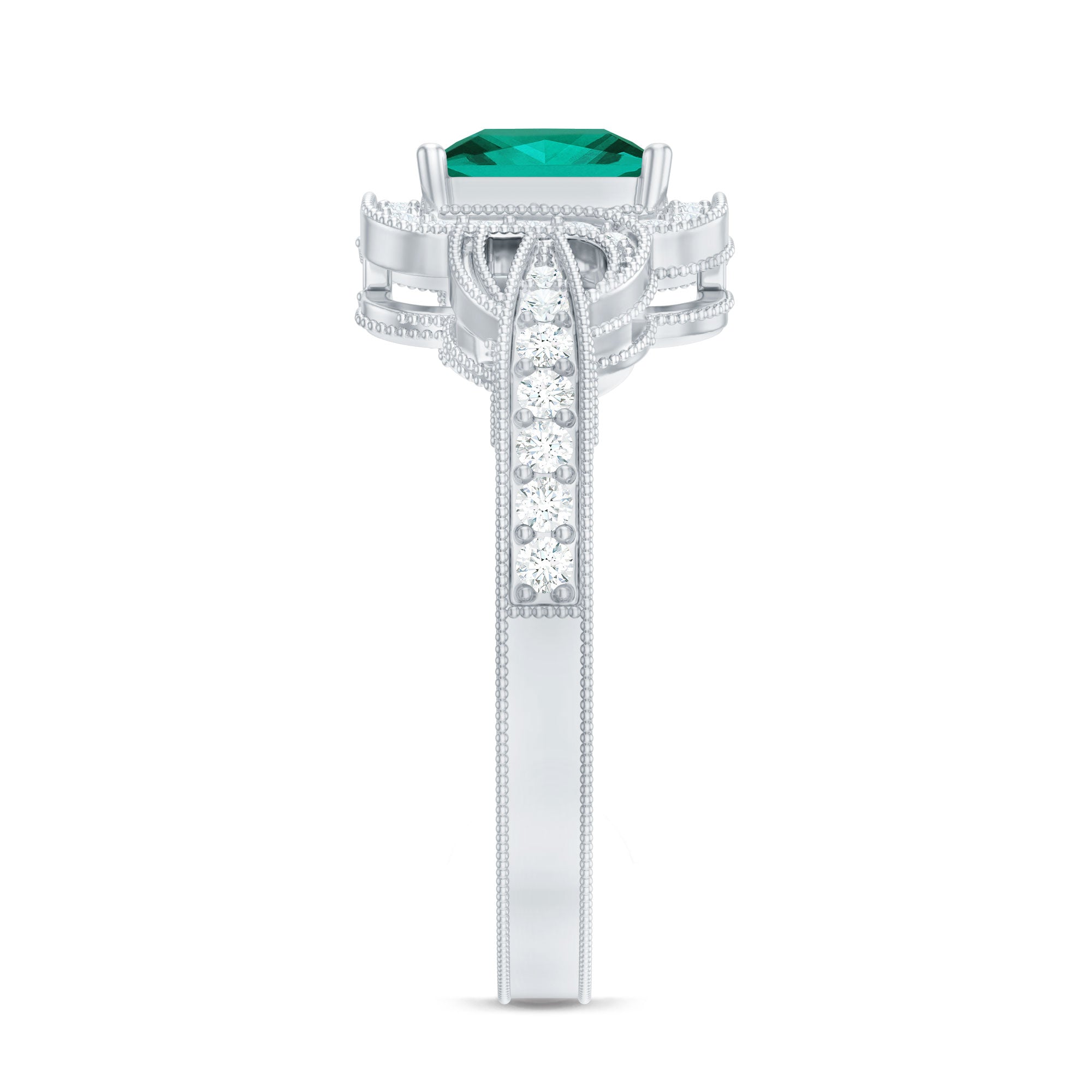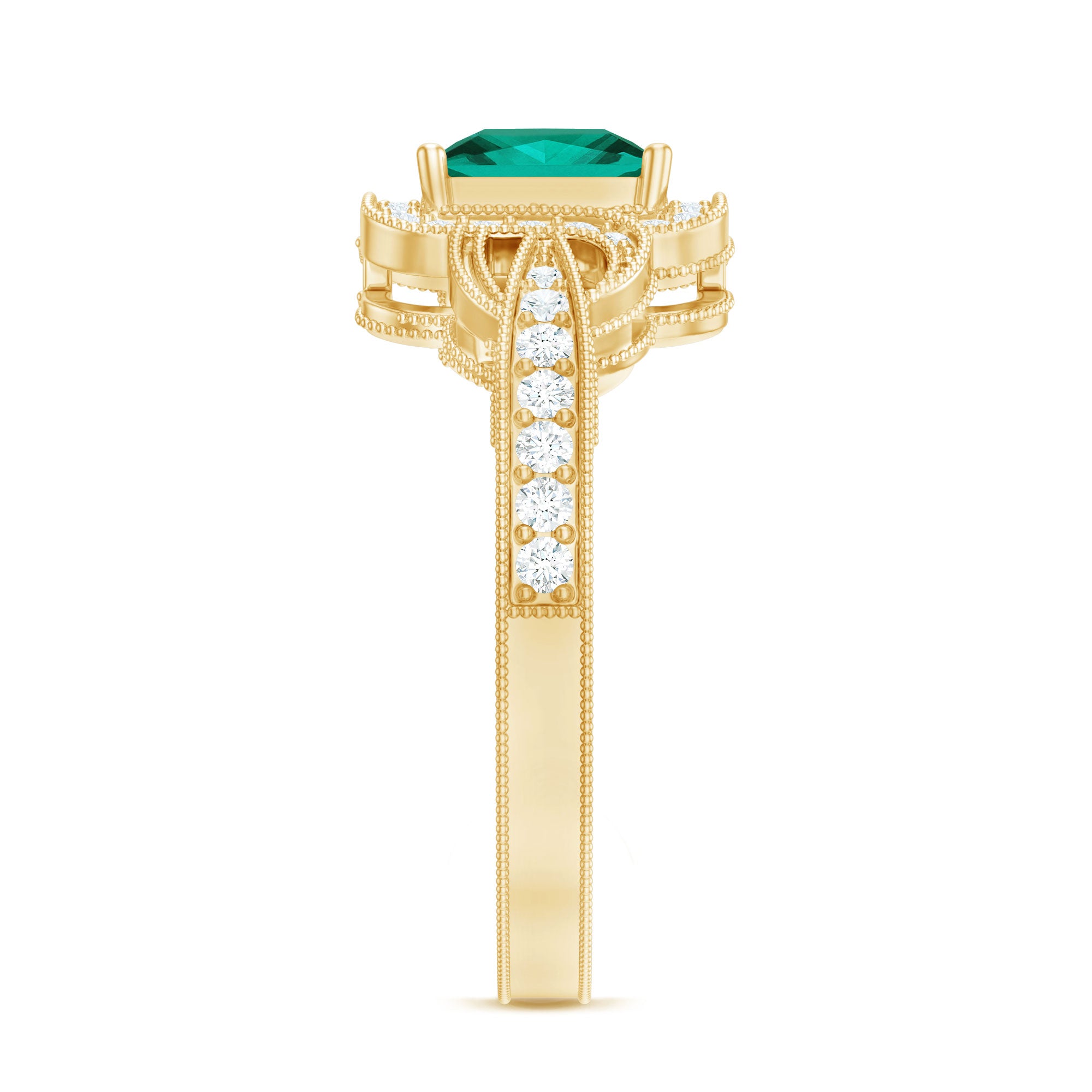 Lab Grown Emerald Vintage Inspired Engagement Ring with Diamond