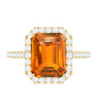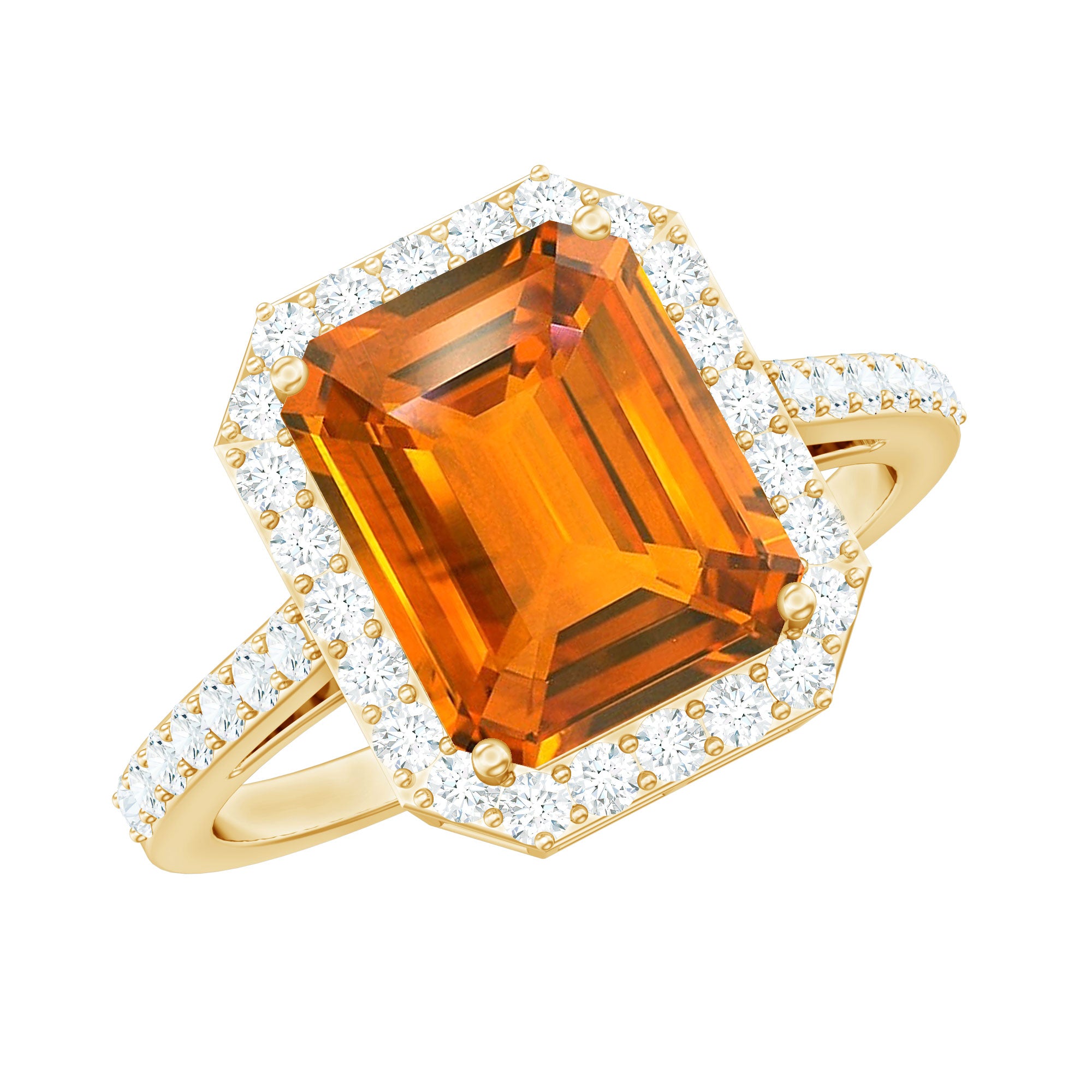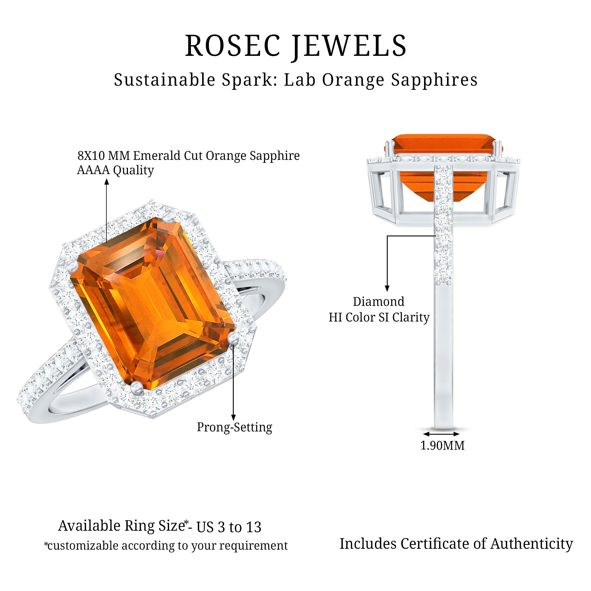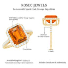 Lab Grown Orange Sapphire Emerald Cut Engagement Ring with Diamond