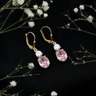 Lab Grown Pink Sapphire and Moissanite Drop Earrings With Leverback