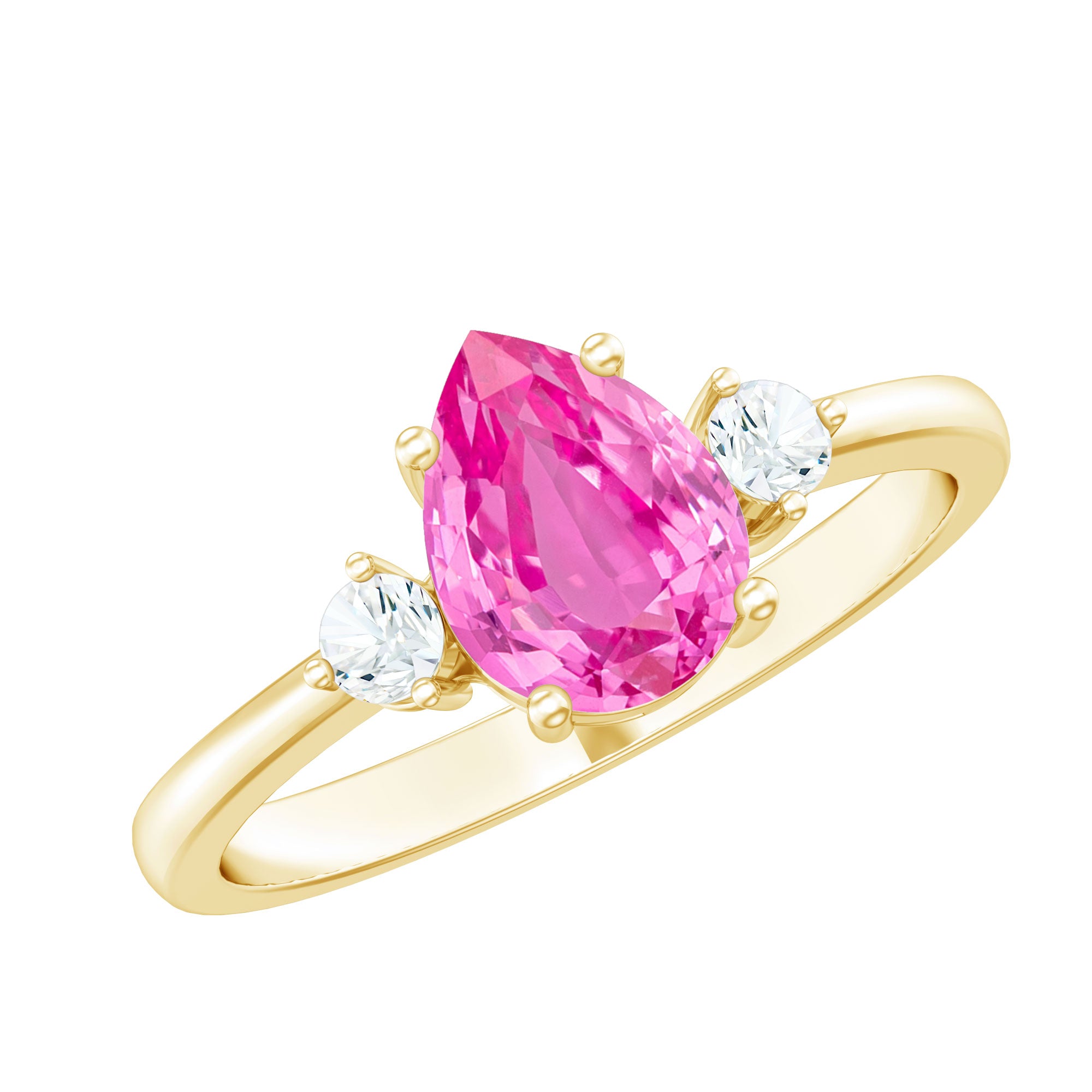With just a touch of Celtic charm, this black onyx solitaire ring is a beautiful way to ask for her hand. Featuring with 6X8 MM Pear Cut Pink Sapphire set as solitaire in a prong setting with two Diamonds artfully set on both sides. This ring is certain to become a treasured keepsake. All our gemstones are certified and undergo a strict quality check.