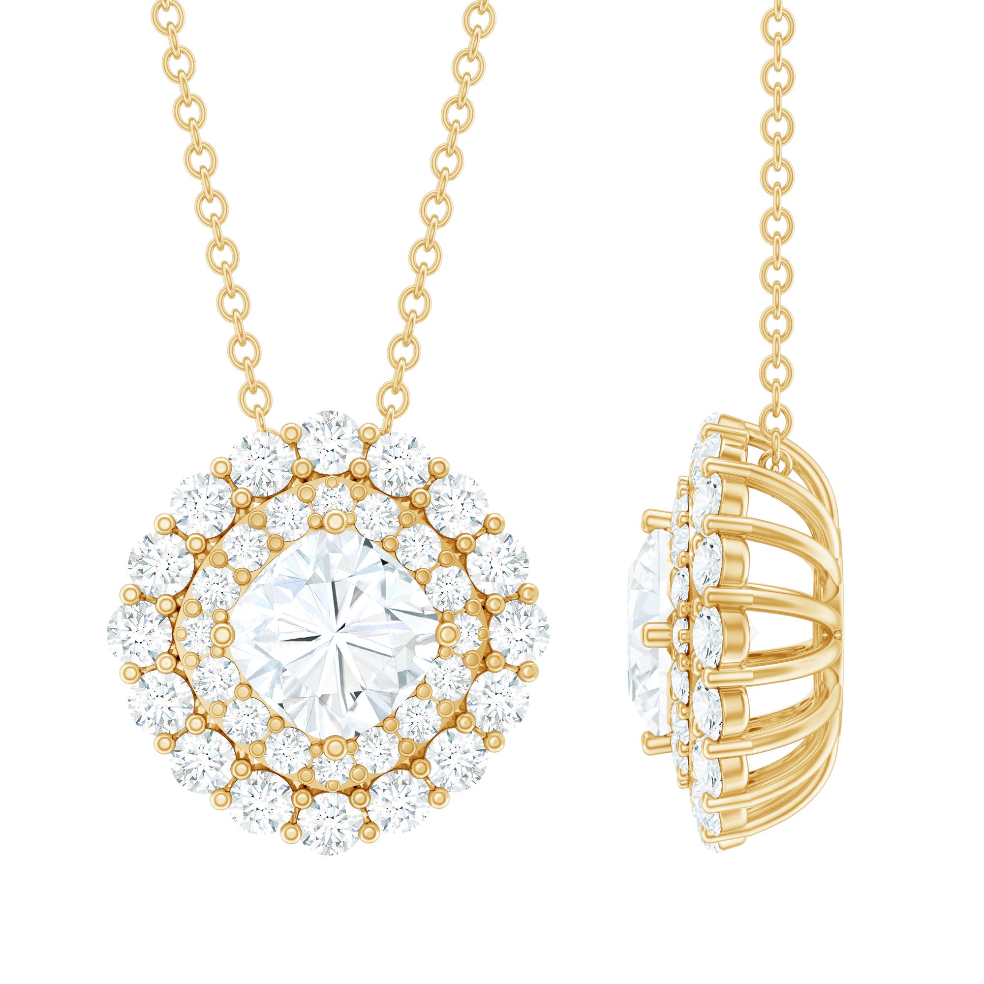 Lab Grown Round Diamond Double Halo Bridal Necklace With Accent