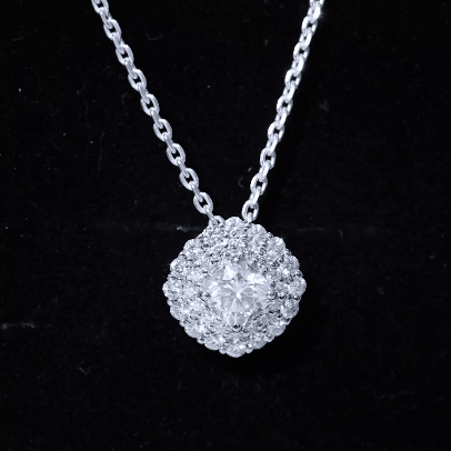 Lab Grown Round Diamond Double Halo Bridal Necklace With Accent