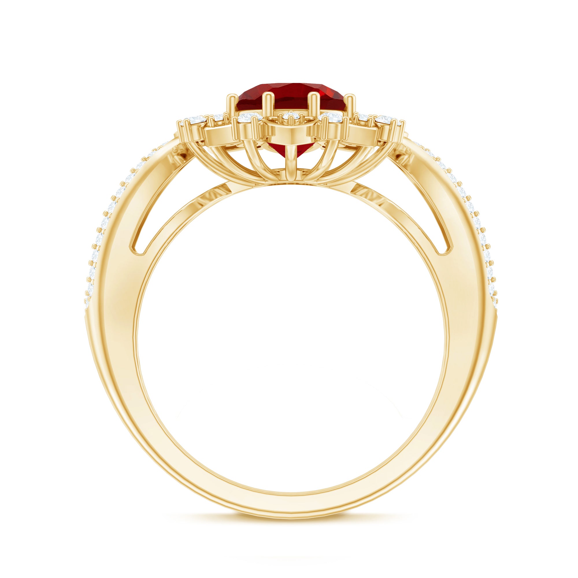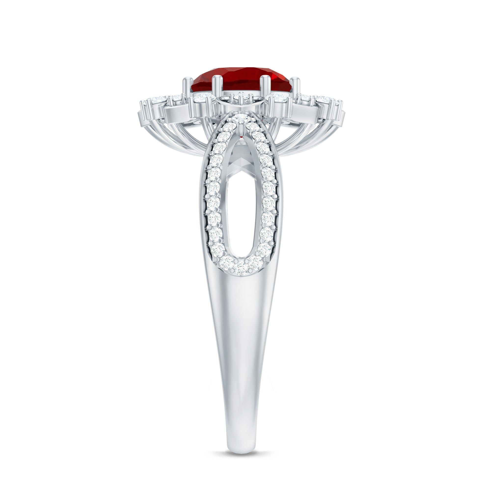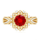 Lab Grown Ruby and Diamond Antique Looking Engagement Ring For Women