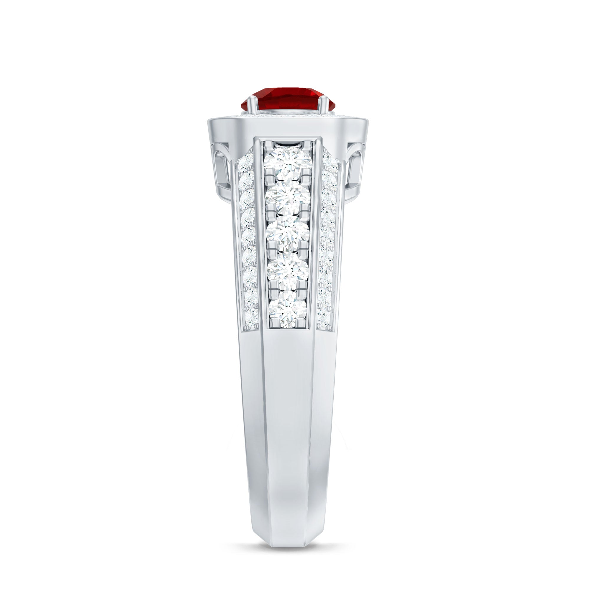 Lab Grown Ruby and Moissanite Halo Engagement Ring