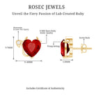 Elevate your style with our captivating Gothic Stud Earrings, a bold and enchanting accessory that commands attention and leaves a lasting impression. These striking Solitaire Stud Earrings showcase a stunning Heart Shape Lab Grown Ruby gemstone, meticulously set in secure Prong Setting, while the intricate tail is adorned with sparkling Moissanite gemstones. These Heart Stud Earrings are more than just earrings, they are a unique fashion statement that embodies both elegance and individuality. Whether worn for a special event or as part of your everyday style, they bring sophistication and charm to any look. Expertly crafted with precision, the AAAA quality lab grown ruby and sparkling D-VS1 quality moissanite ensure lasting beauty and shine. The secure screw-back closures offer comfort and confidence, making these Ruby Heart Earrings easy to wear throughout the day. Perfect for birthdays, anniversaries, or simply as a meaningful gift, these Ruby Earrings are a beautiful way to express elegance and love.