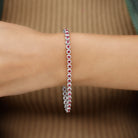 Elevate your style with our Unisex Classic Tennis Bracelet, showcasing stunning Round Shape Created Ruby exquisitely adorned in a secure Prong Setting. This bracelet is a versatile and timeless accessory, perfect for both men and women, offering a touch of sophistication and elegance to any attire or occasion.