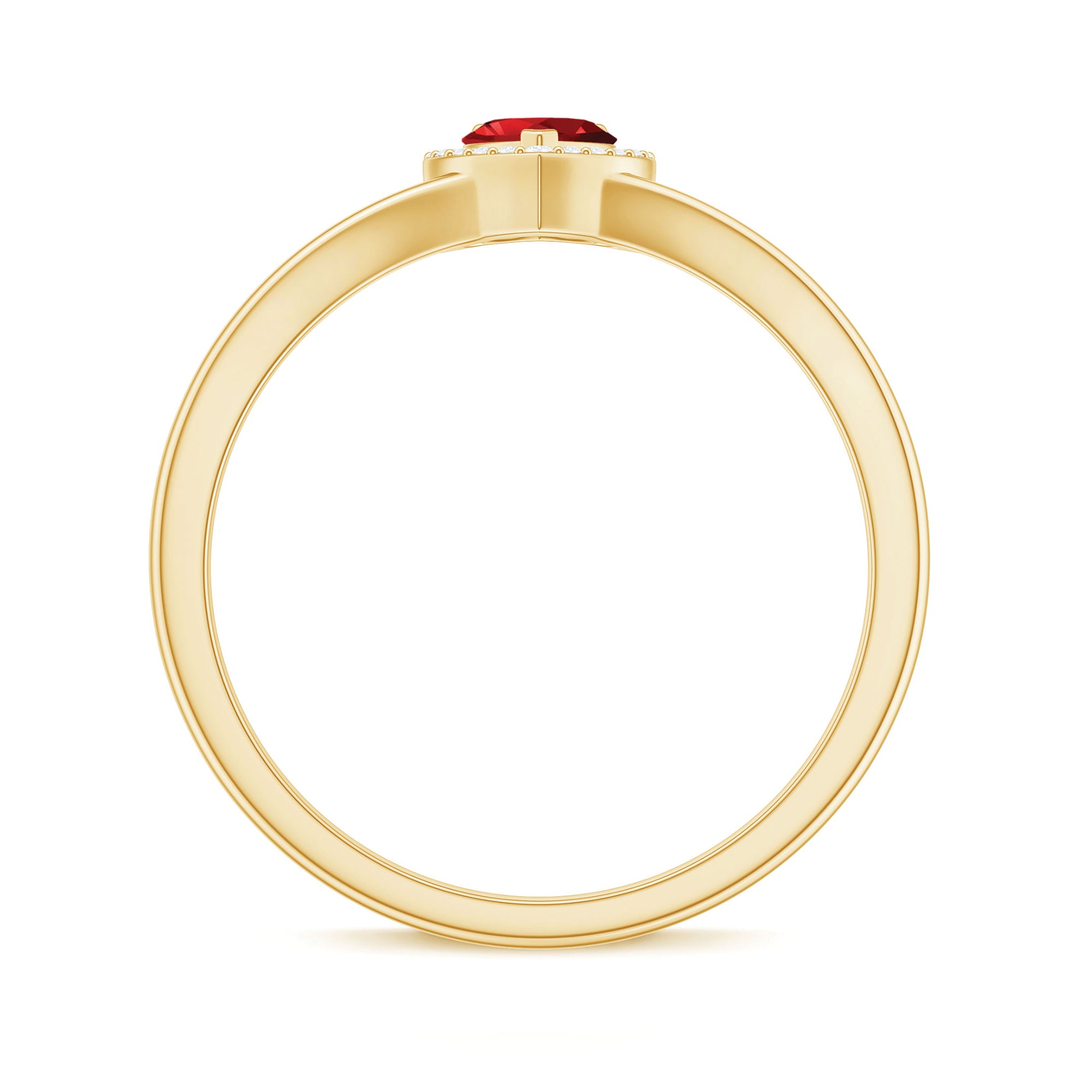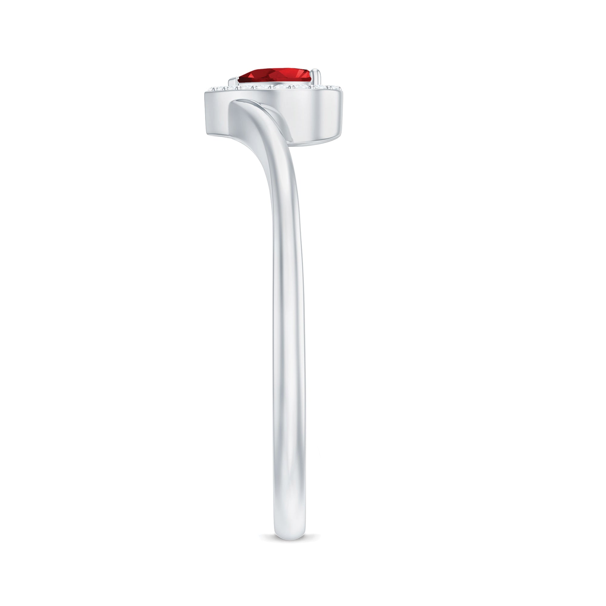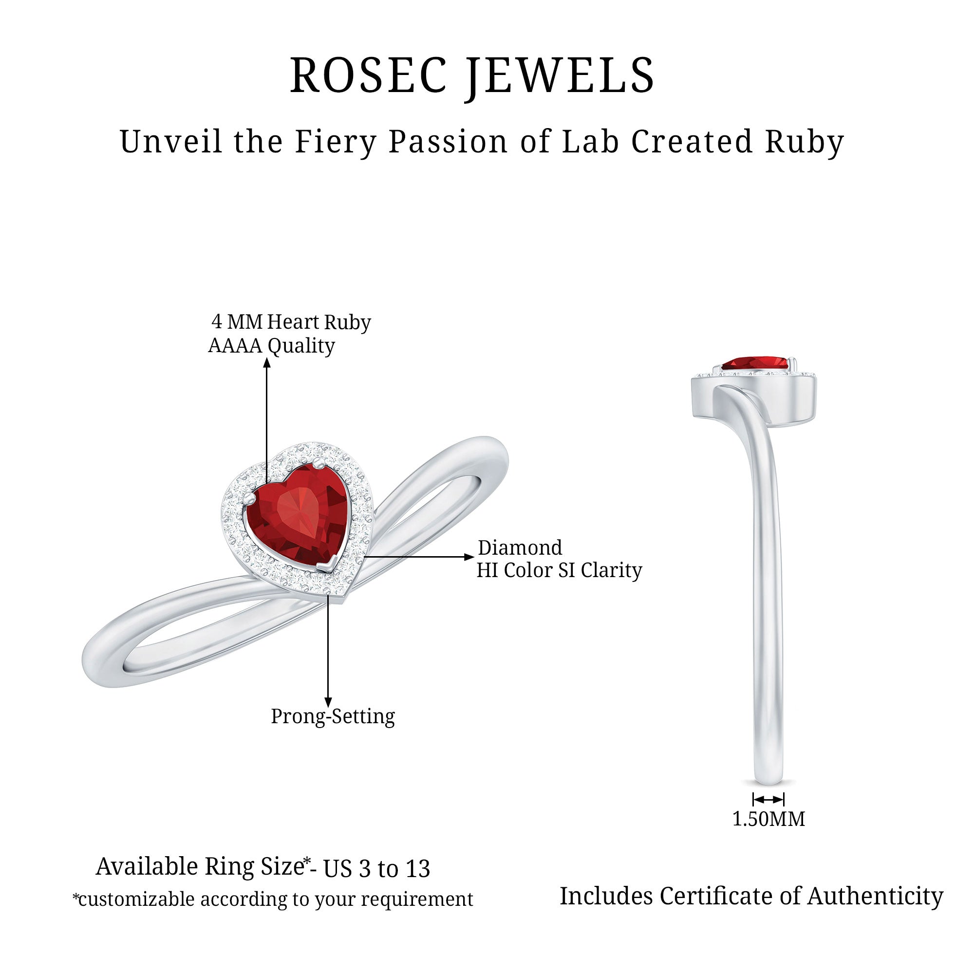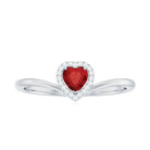 Lab Grown Ruby Heart Promise Ring with Diamond Halo