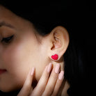 Lab Grown Ruby Heart Shaped Earrings with Certificate
