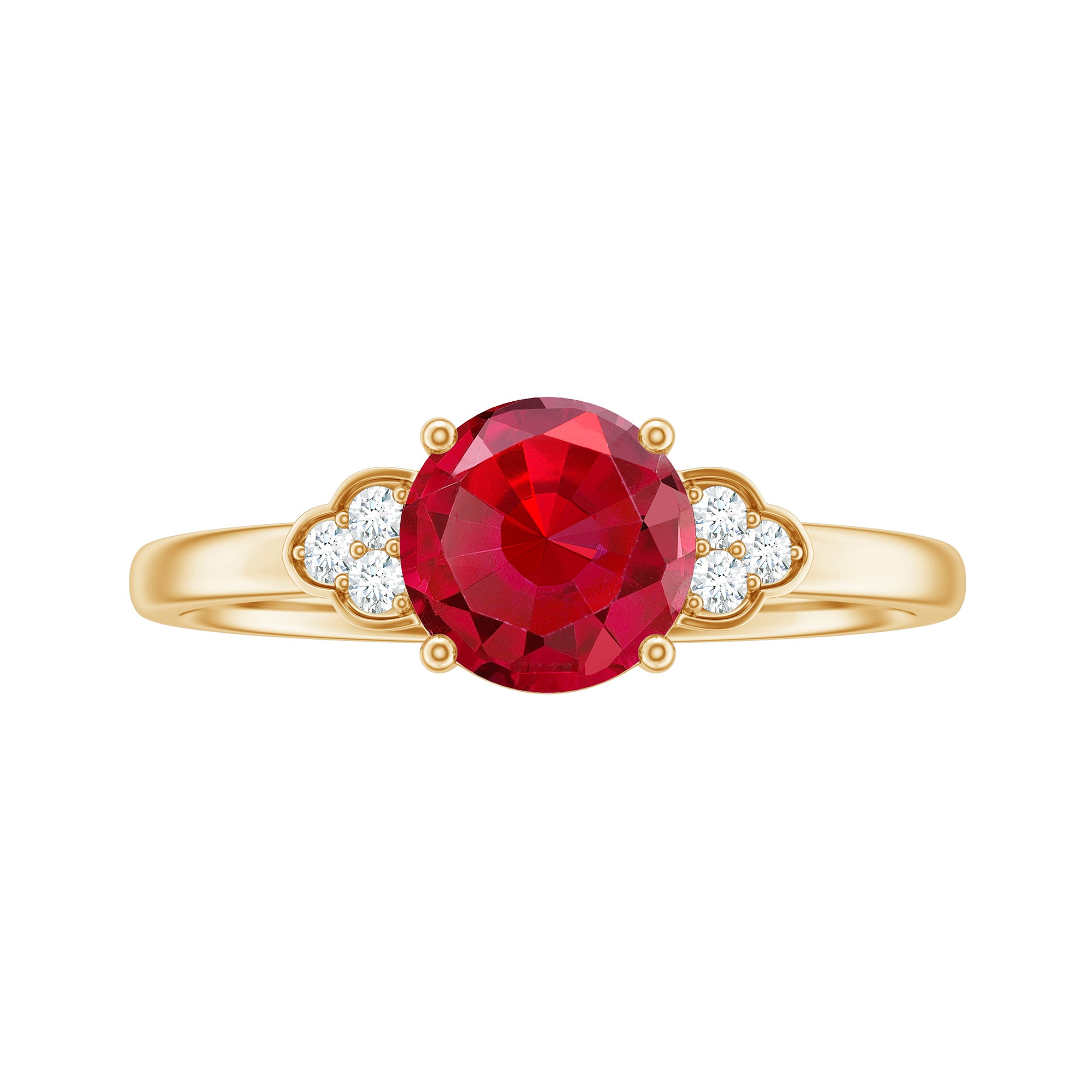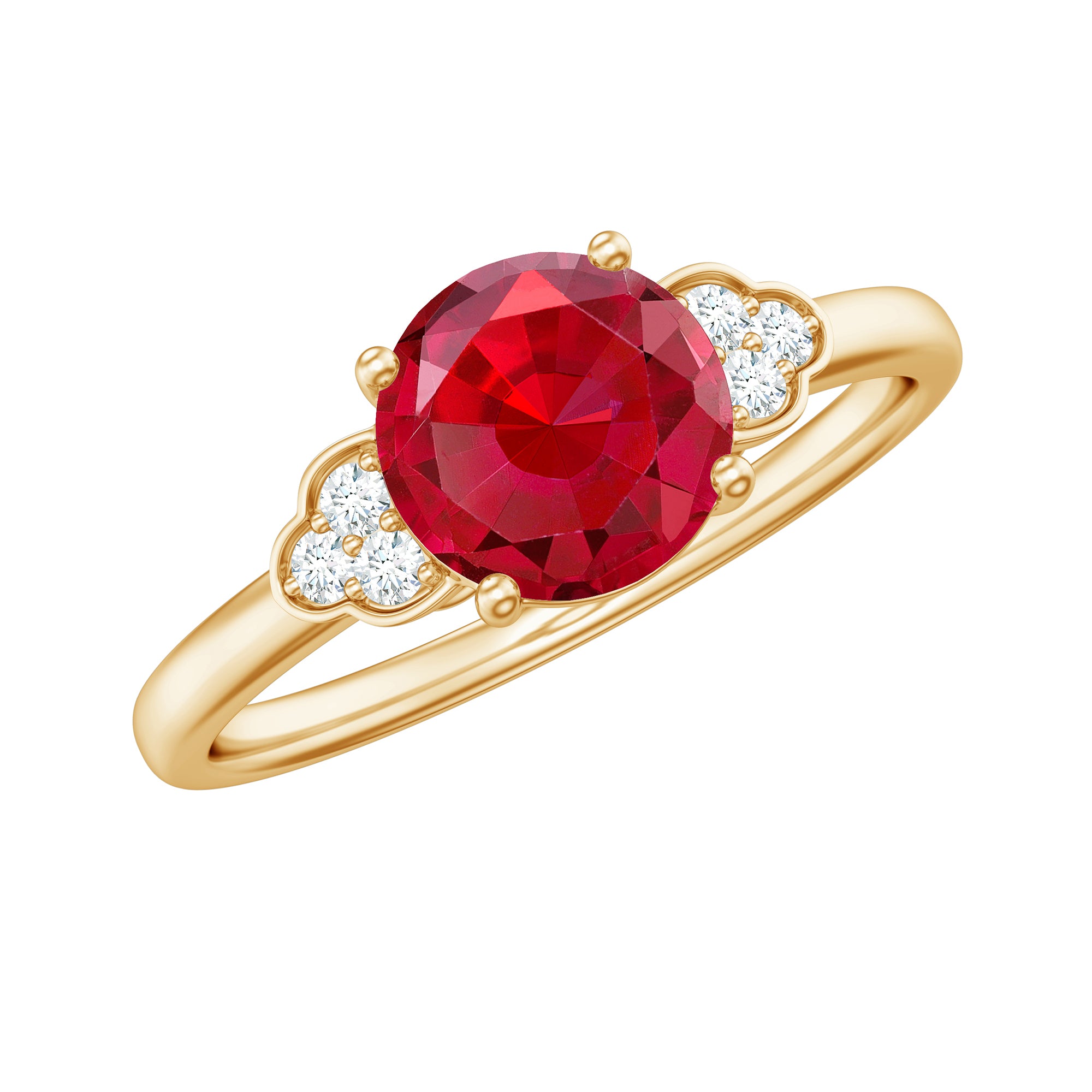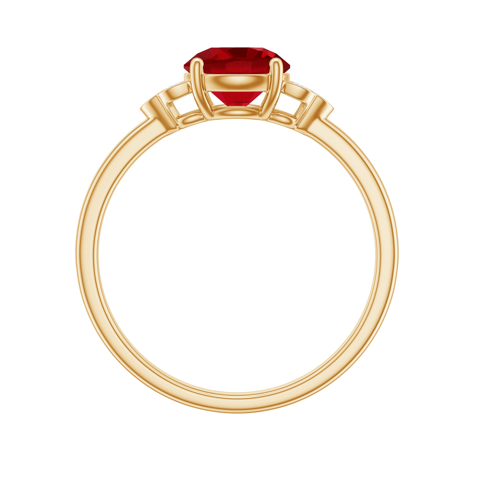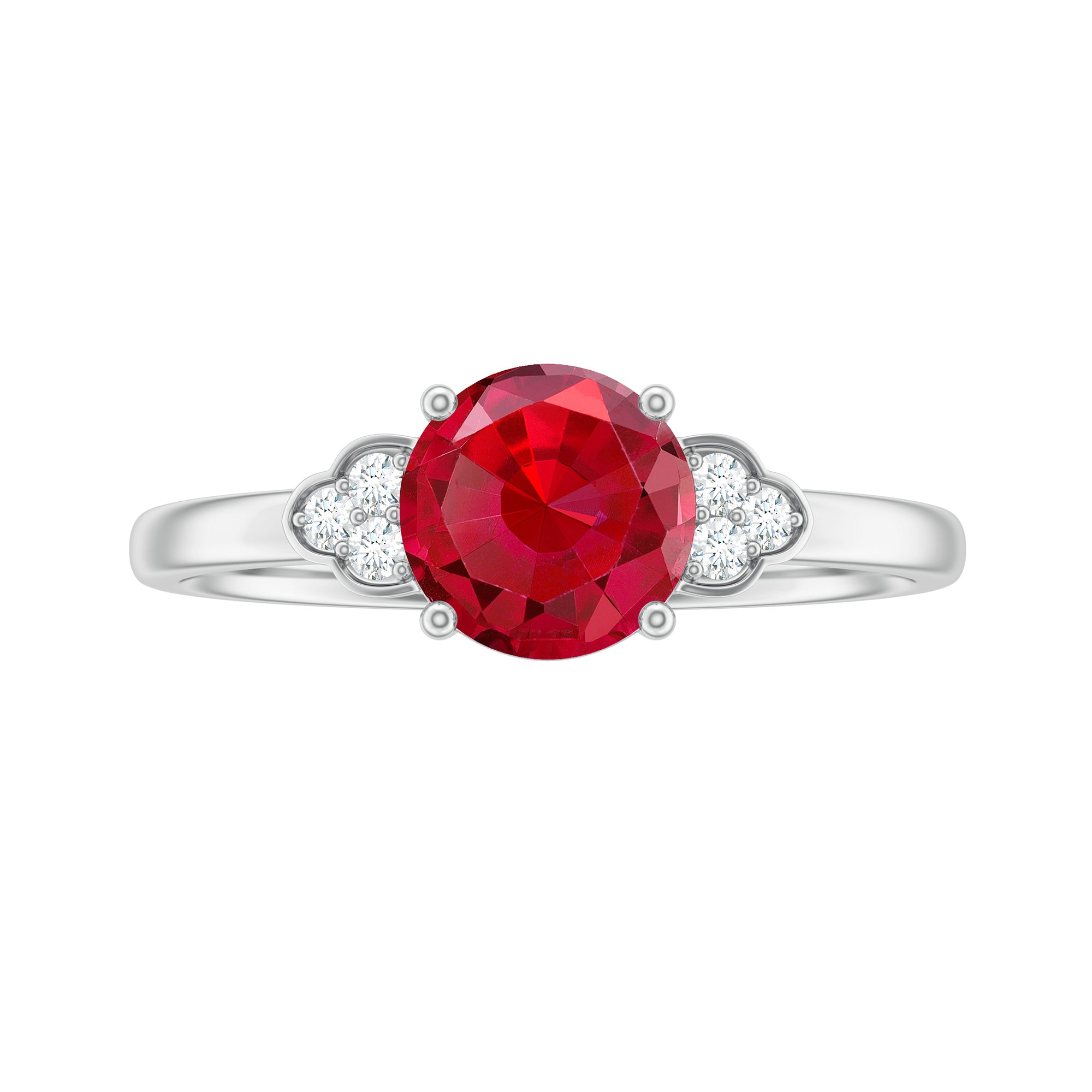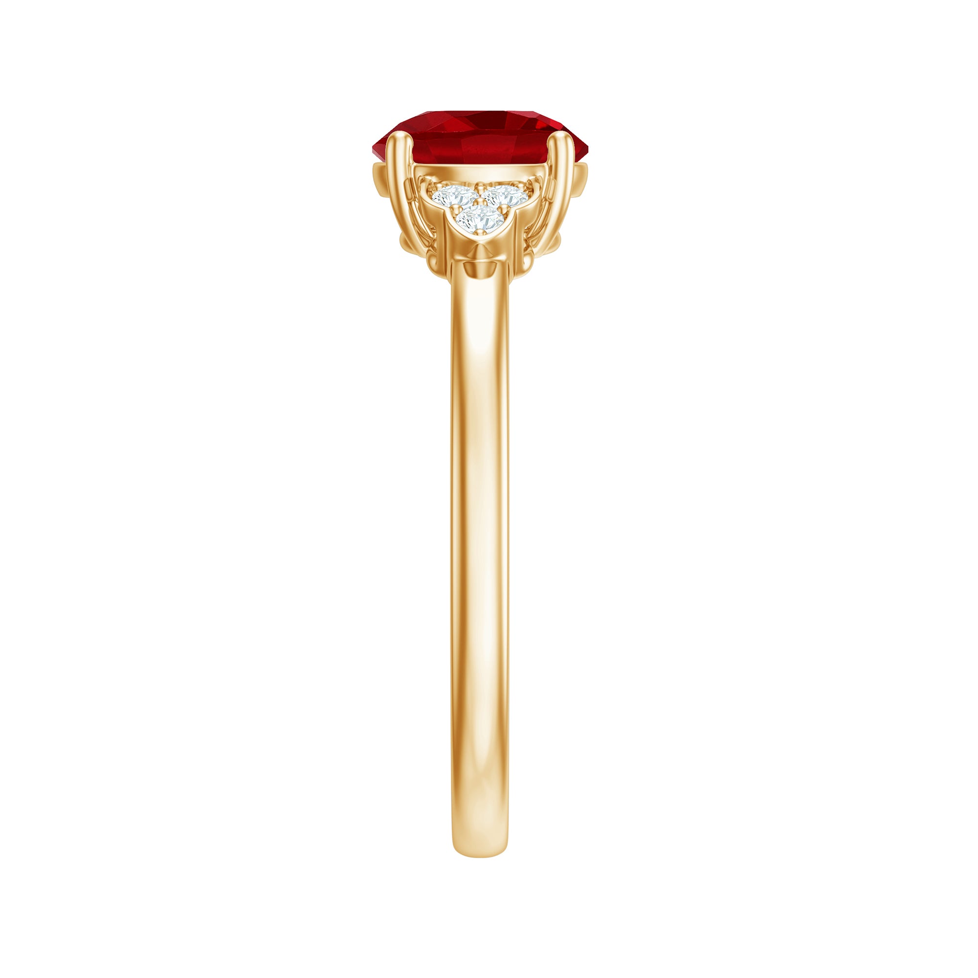 Lab Grown Ruby Solitaire Engagement Ring with Diamond Trio