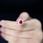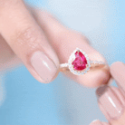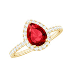 Lab Grown Ruby Teardrop Engagement Ring with Diamond Halo
