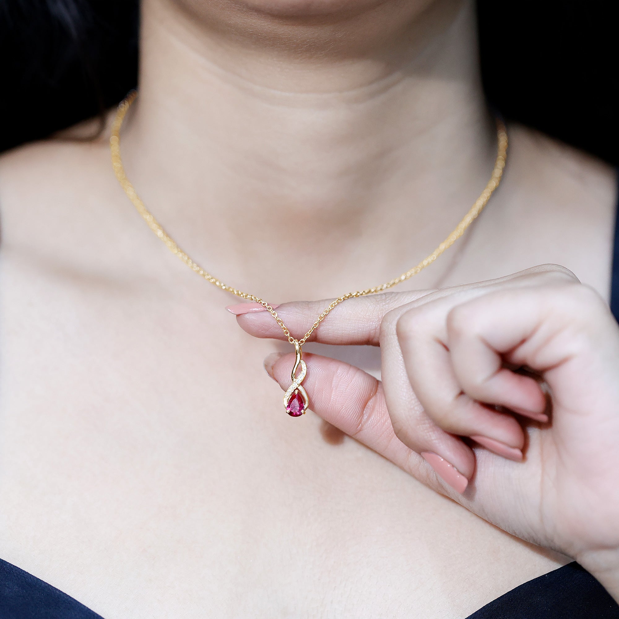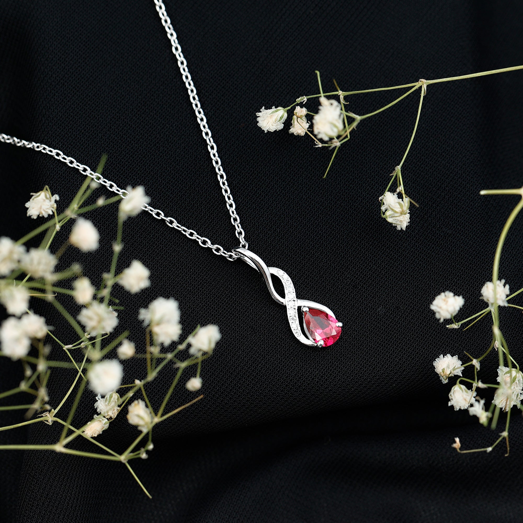 Lab Grown Ruby Teardrop Infinity Necklace with Chain