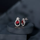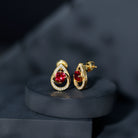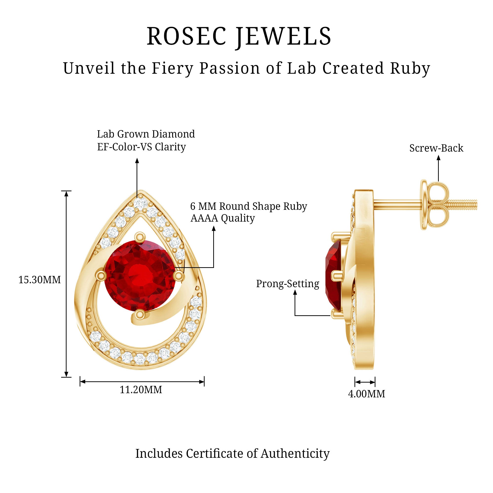 Lab Grown Ruby Teardrop Stud Earrings With Diamond