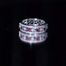 Surprise her with this Lab Grown Ruby Band Ring which is adorned with petite Moissanites. The band features round shaped rubies and moissanite delicately placed in Prong Setting which looks like a beautiful blend of red hue with sparkles. This Vintage Anniversary Band beholds the shine of AAAA Quality Cultured Rubies and D-VS1 Quality Moissanites which makes it perfect for the special day. This Wedding Band Ring depicts love, passion, and power which will not only stun your bride but also strengthen the bond between you and your partner. This band ring will be delivered to you in the premium quality packaging with the classic jewelry box for storage.