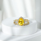 Lab Grown Yellow Sapphire Engagement Ring with Diamond Wedding Band
