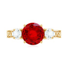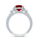 Lab Made Ruby and Moissanite 3 Stone Engagement Ring With Certificate