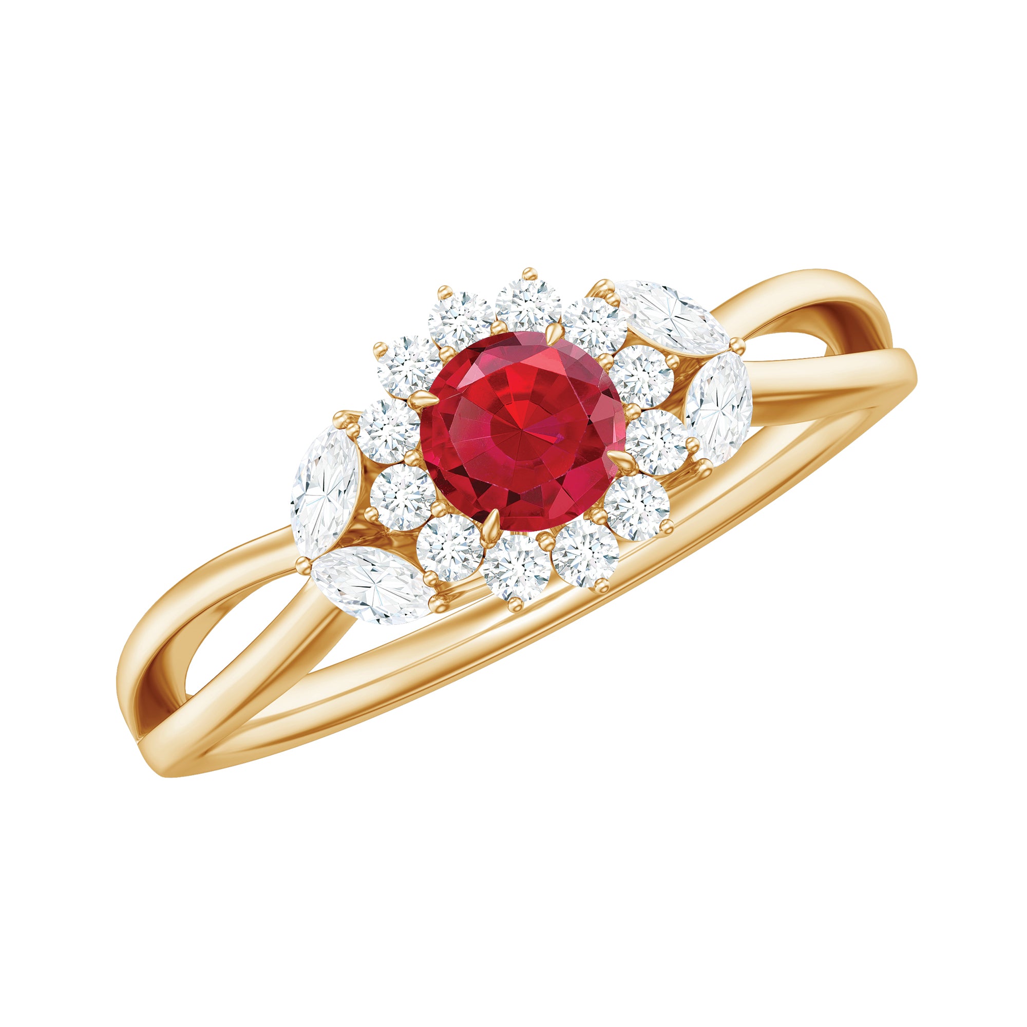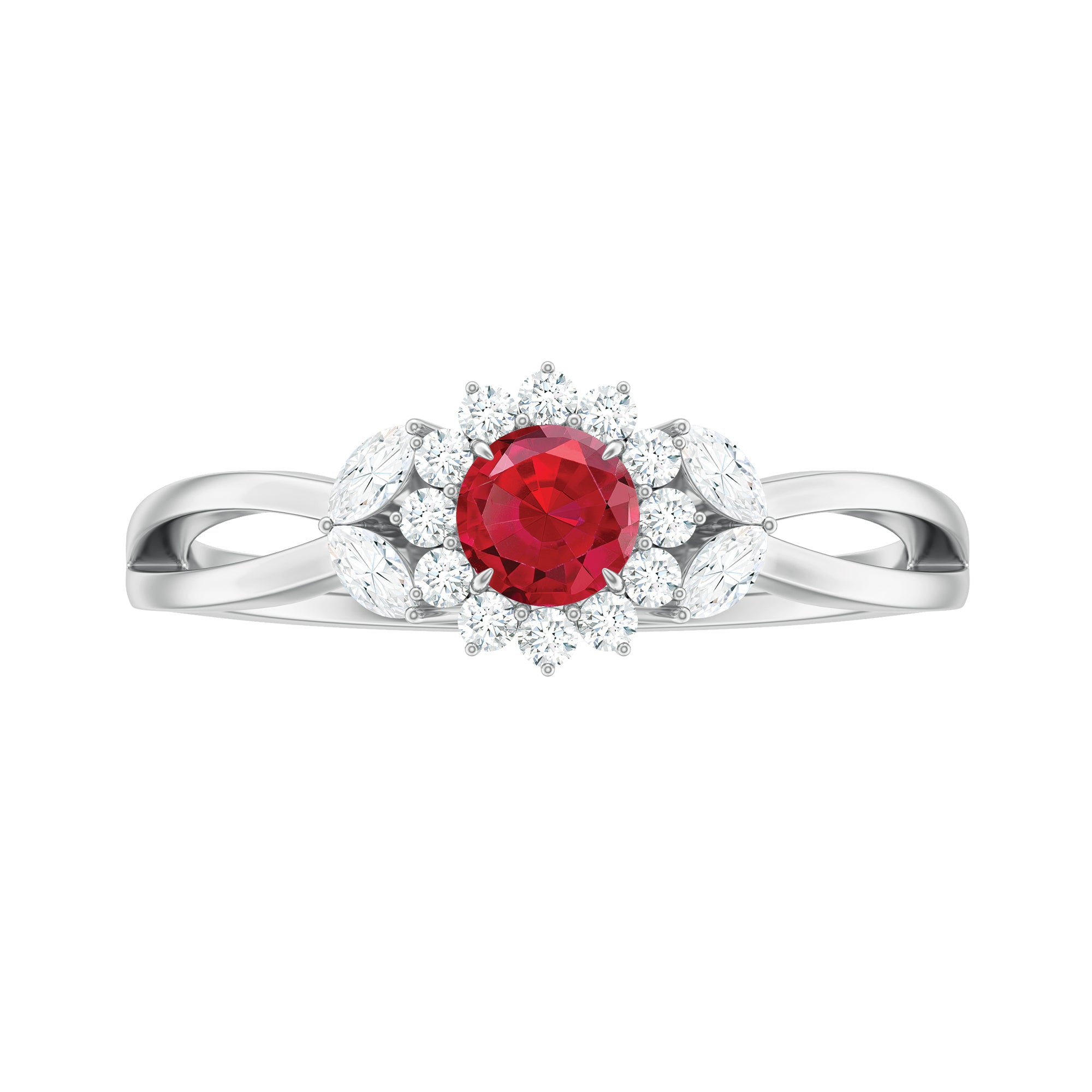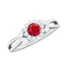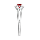 Lab Ruby and Diamond Flower Engagement Ring in Split Shank
