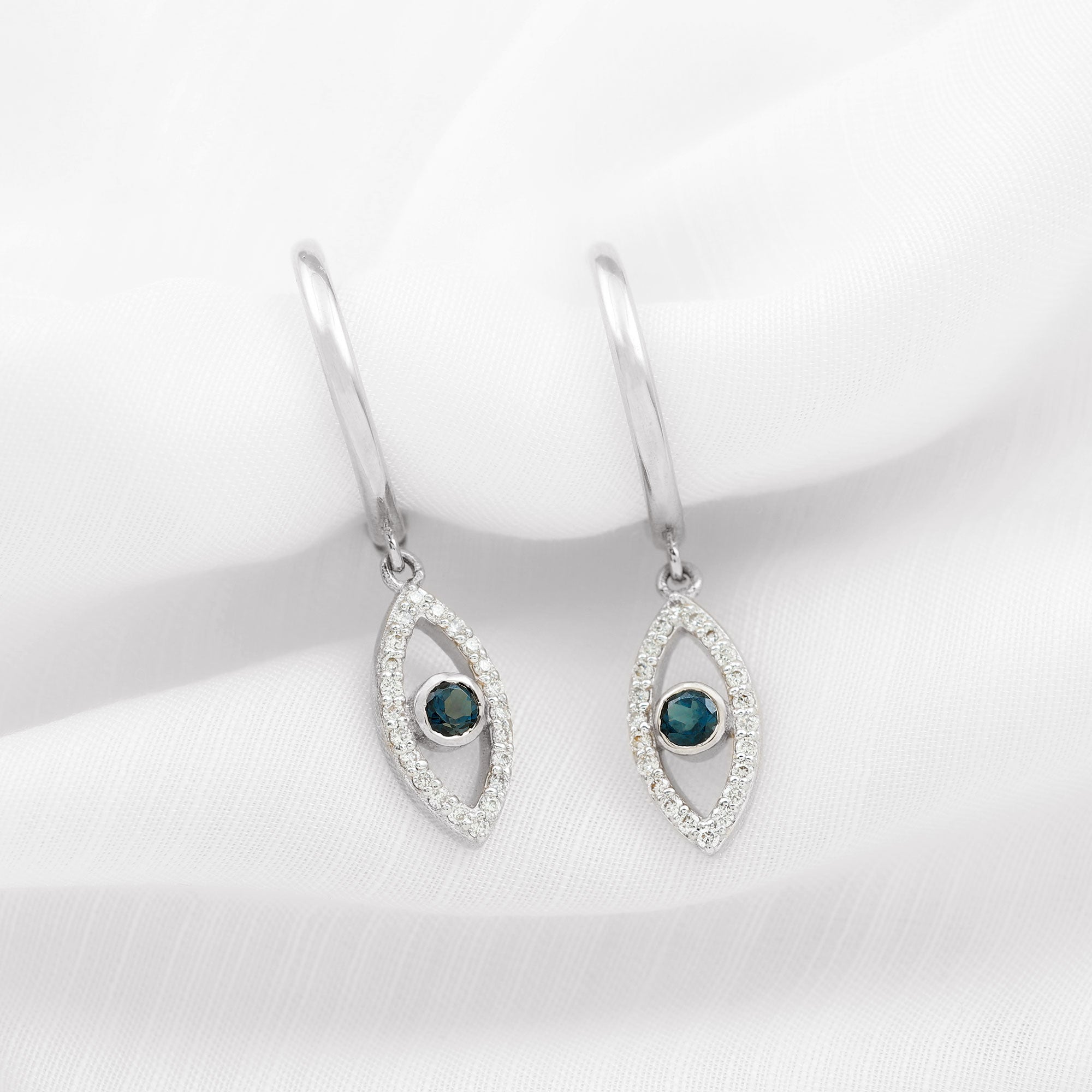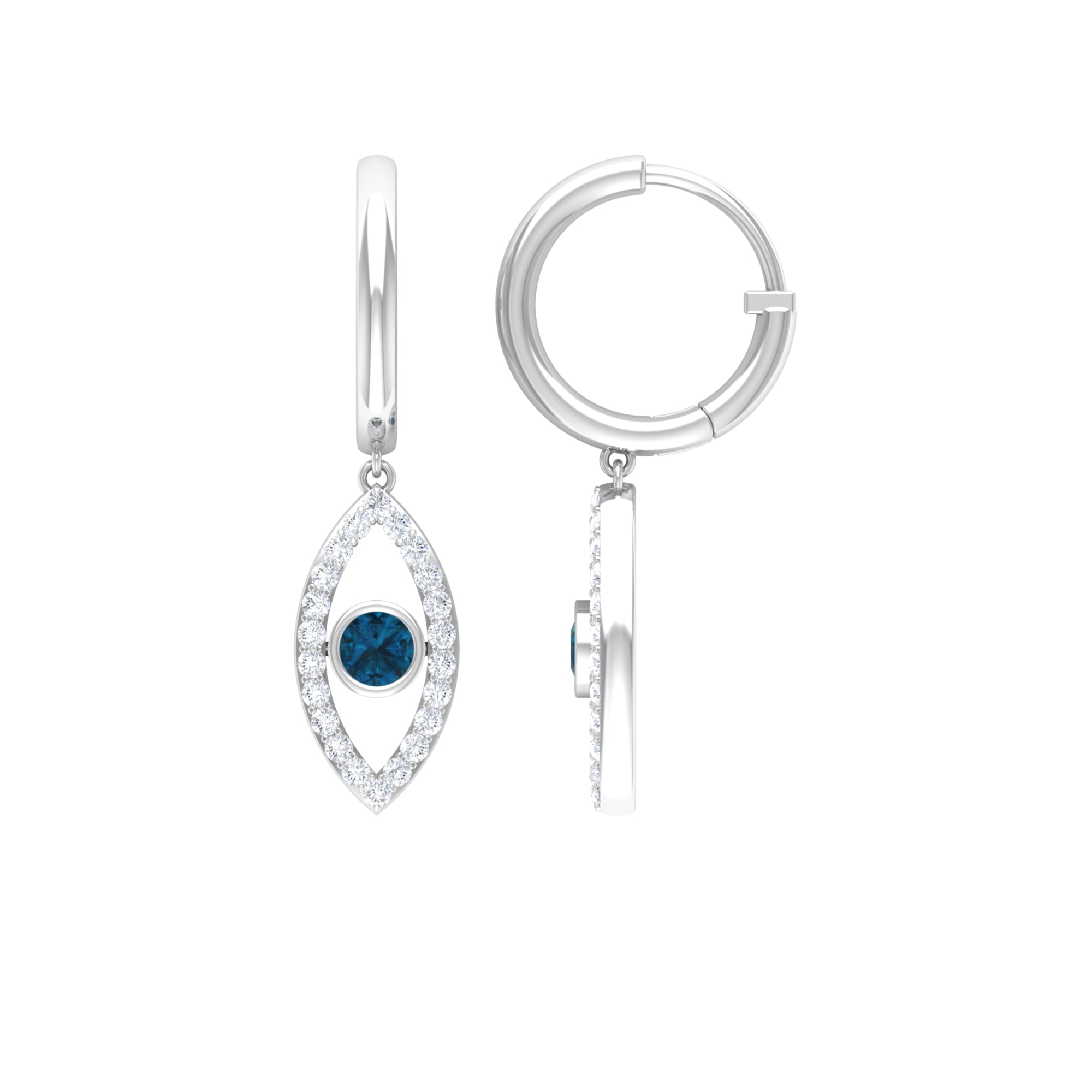 London Blue Topaz and Diamond Evil Eye Hoop Drop Earrings