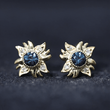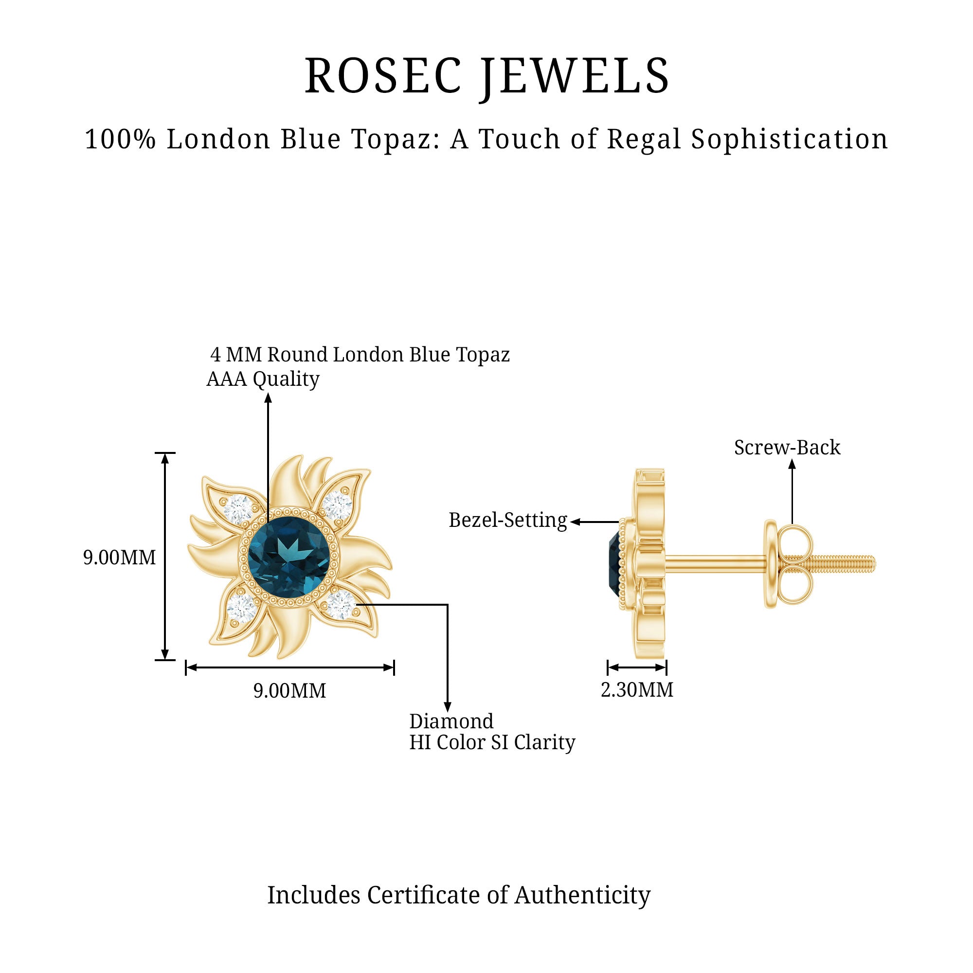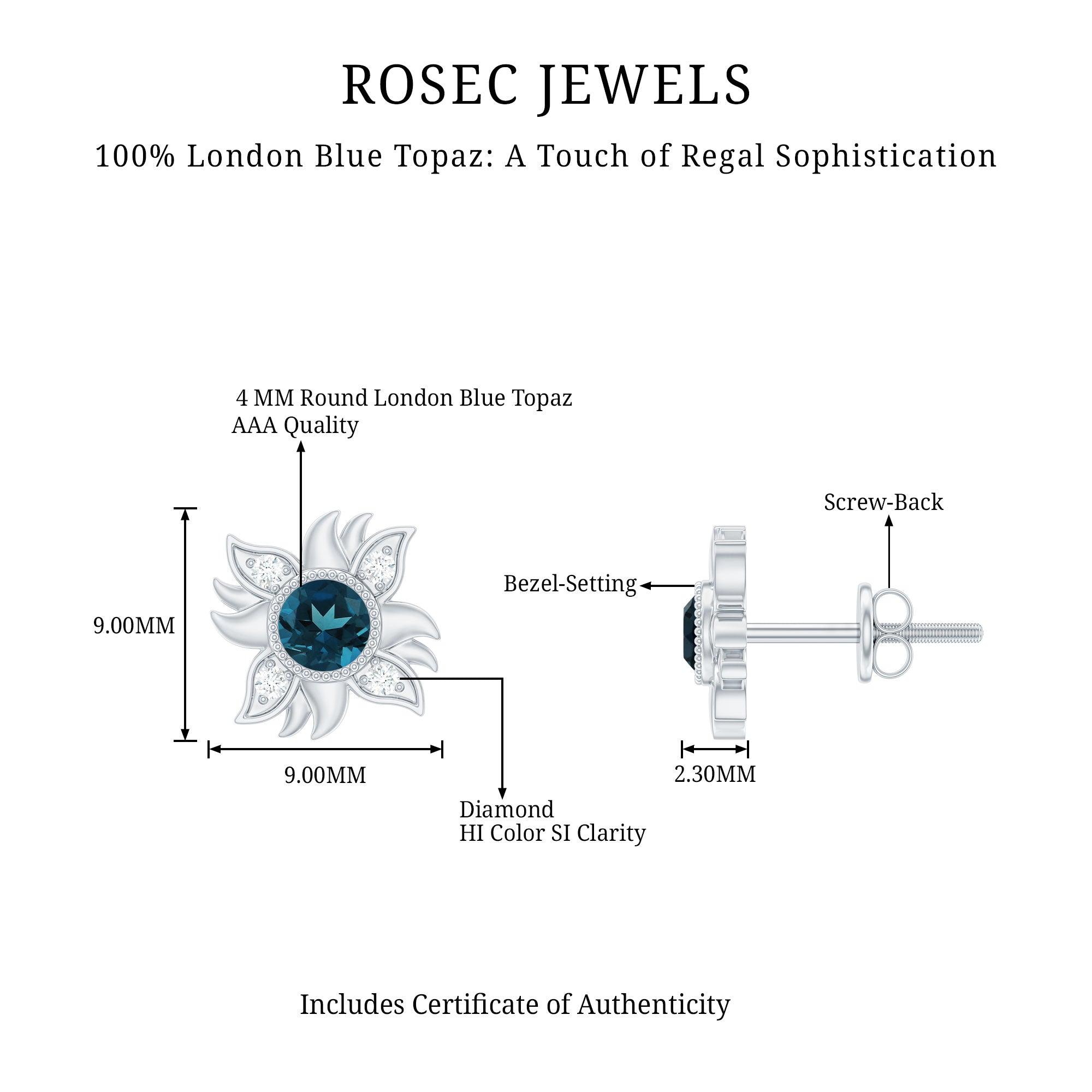 London Blue Topaz and Diamond Sunburst Stud Earrings
