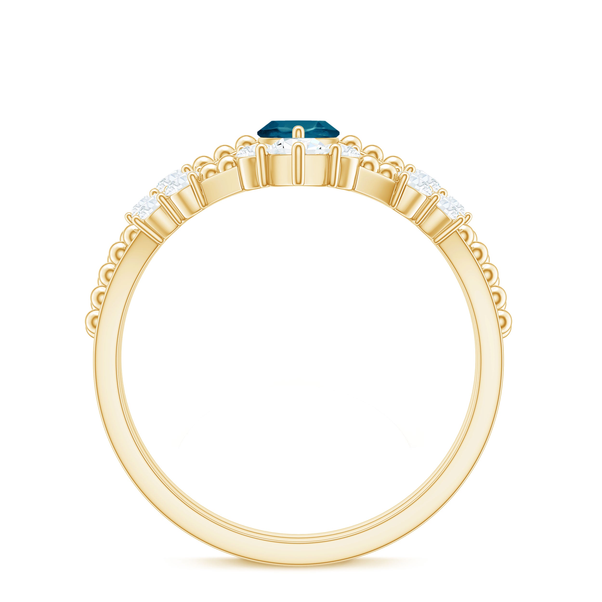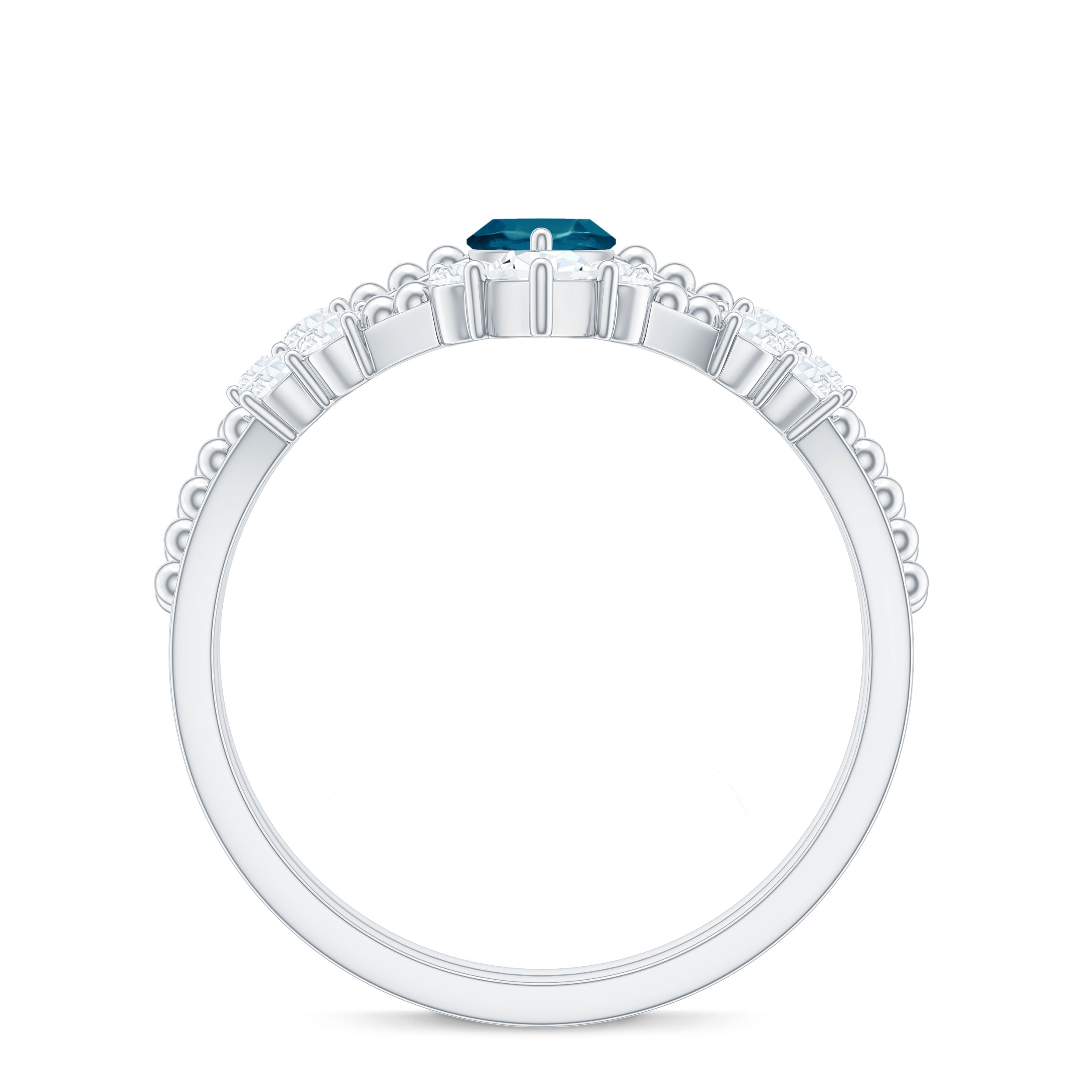 London Blue Topaz and Diamond Wedding Ring Set with Beaded Details