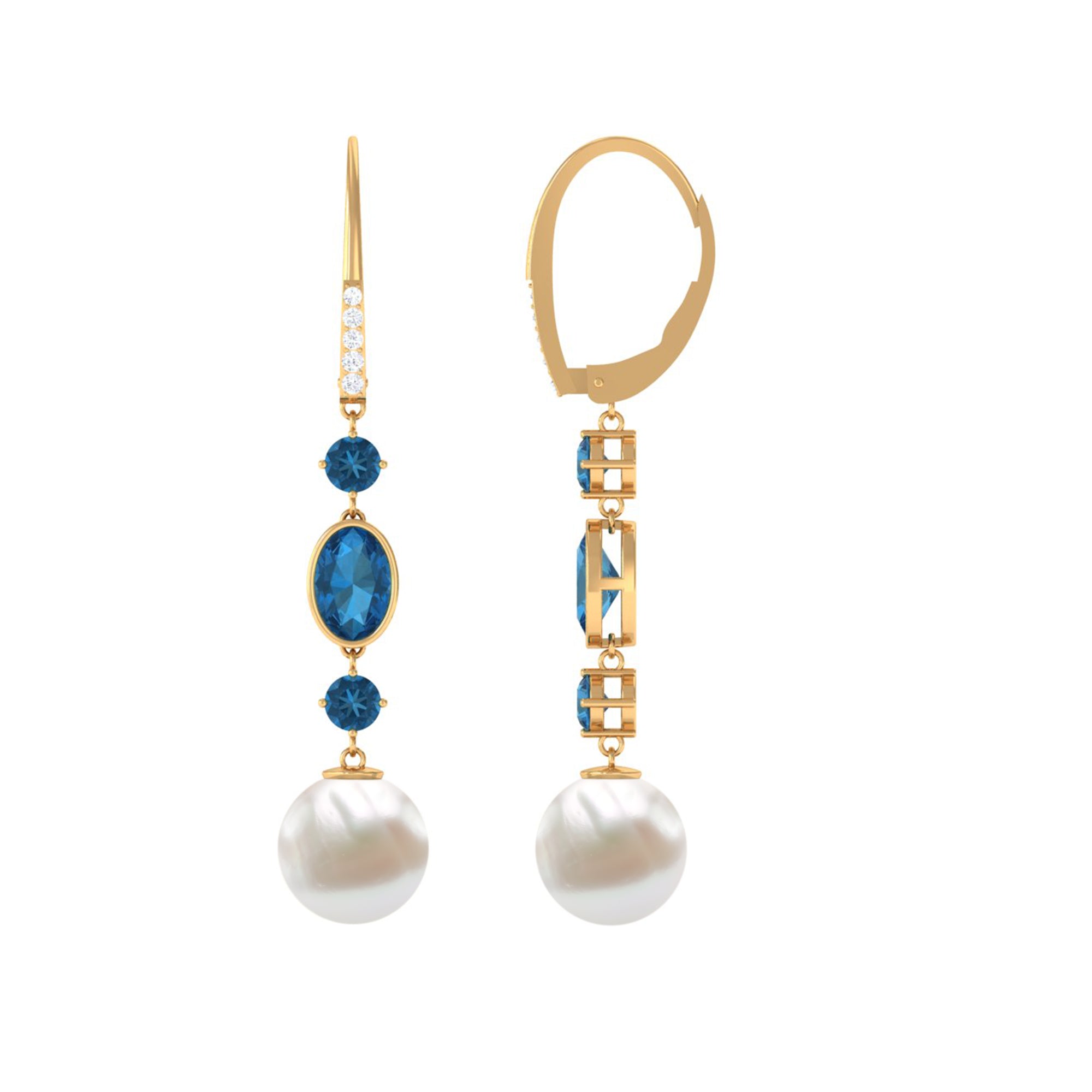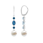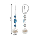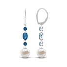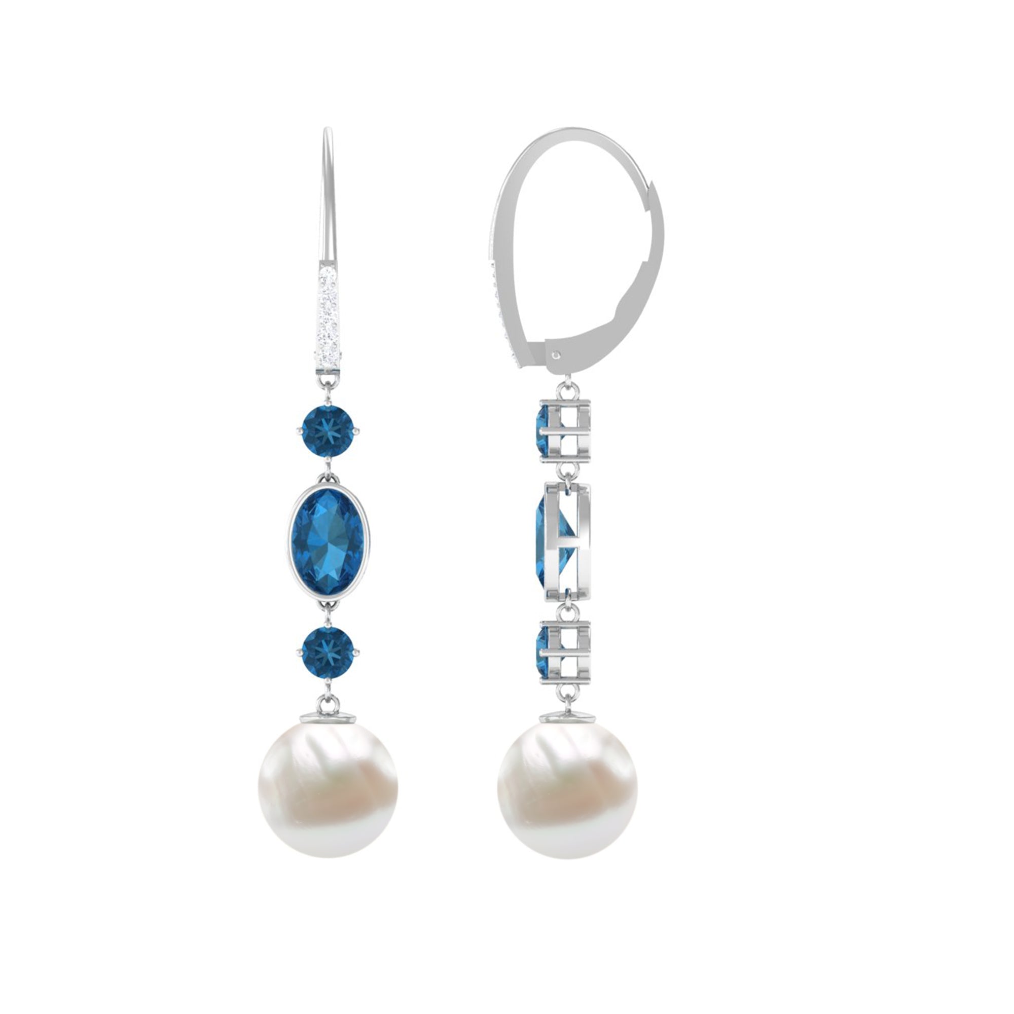 London Blue Topaz and Freshwater Pearl Dangle Earrings with Moissanite