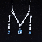 London Blue Topaz and Moissanite Drop Necklace Earrings Set