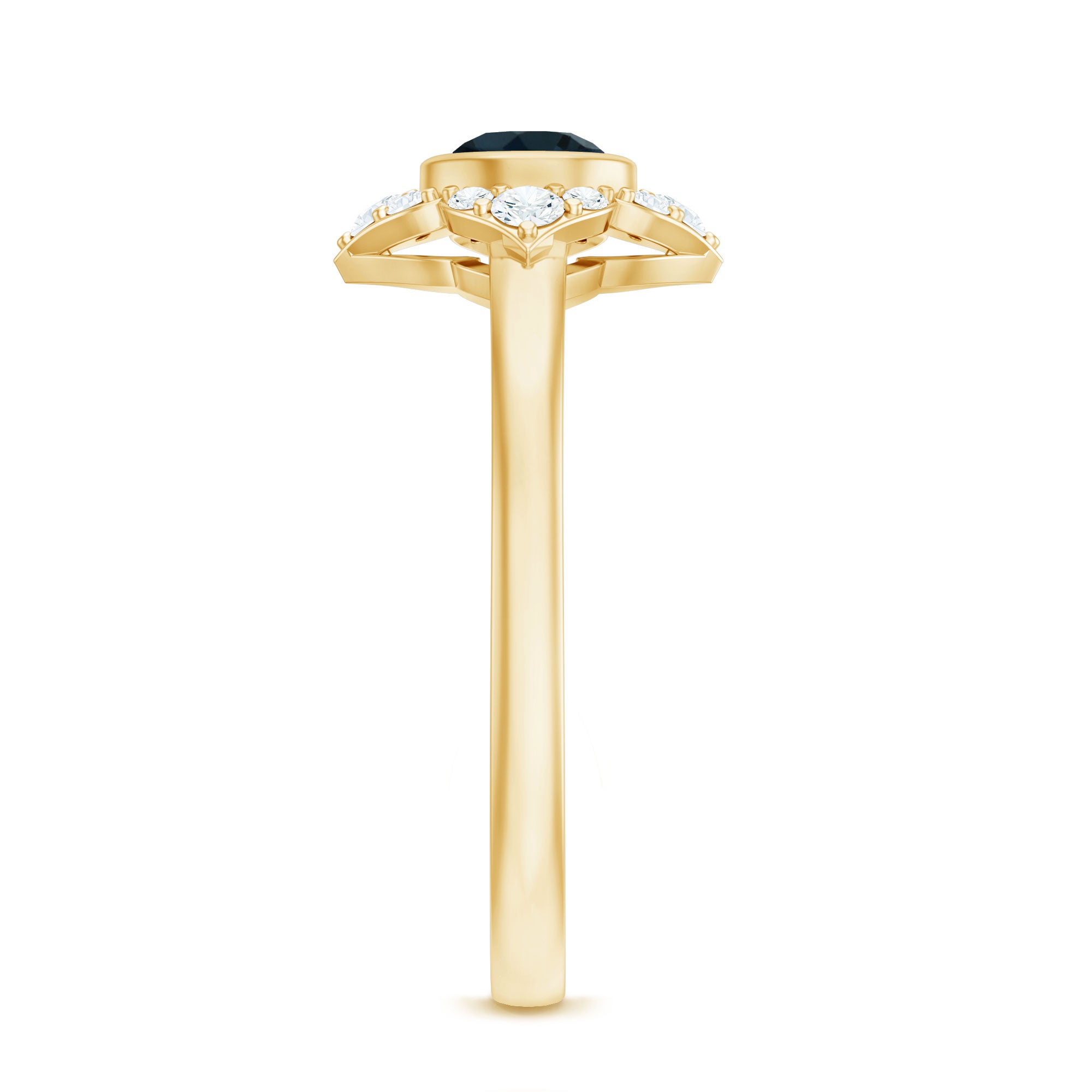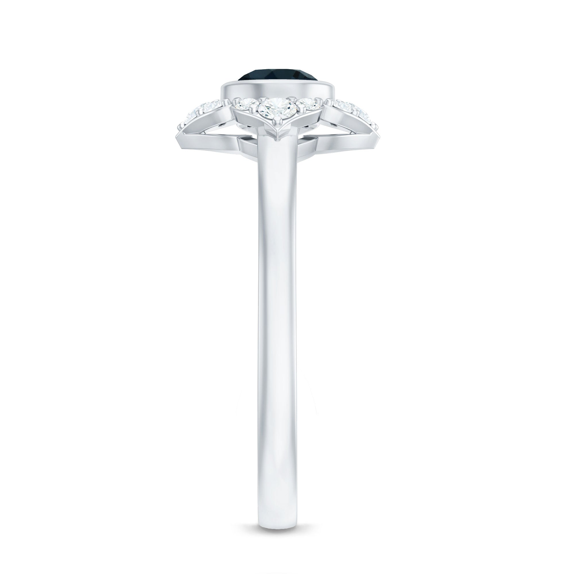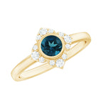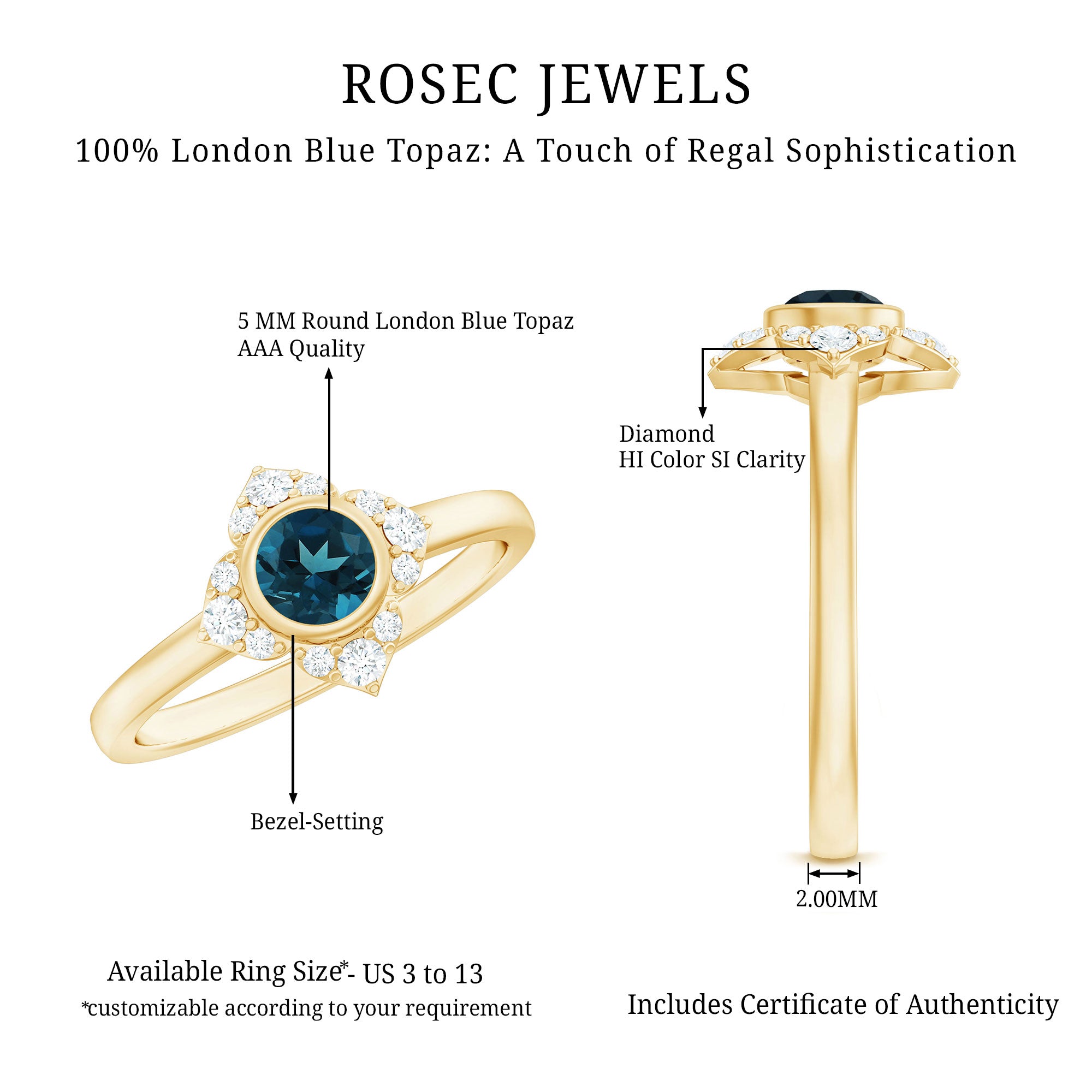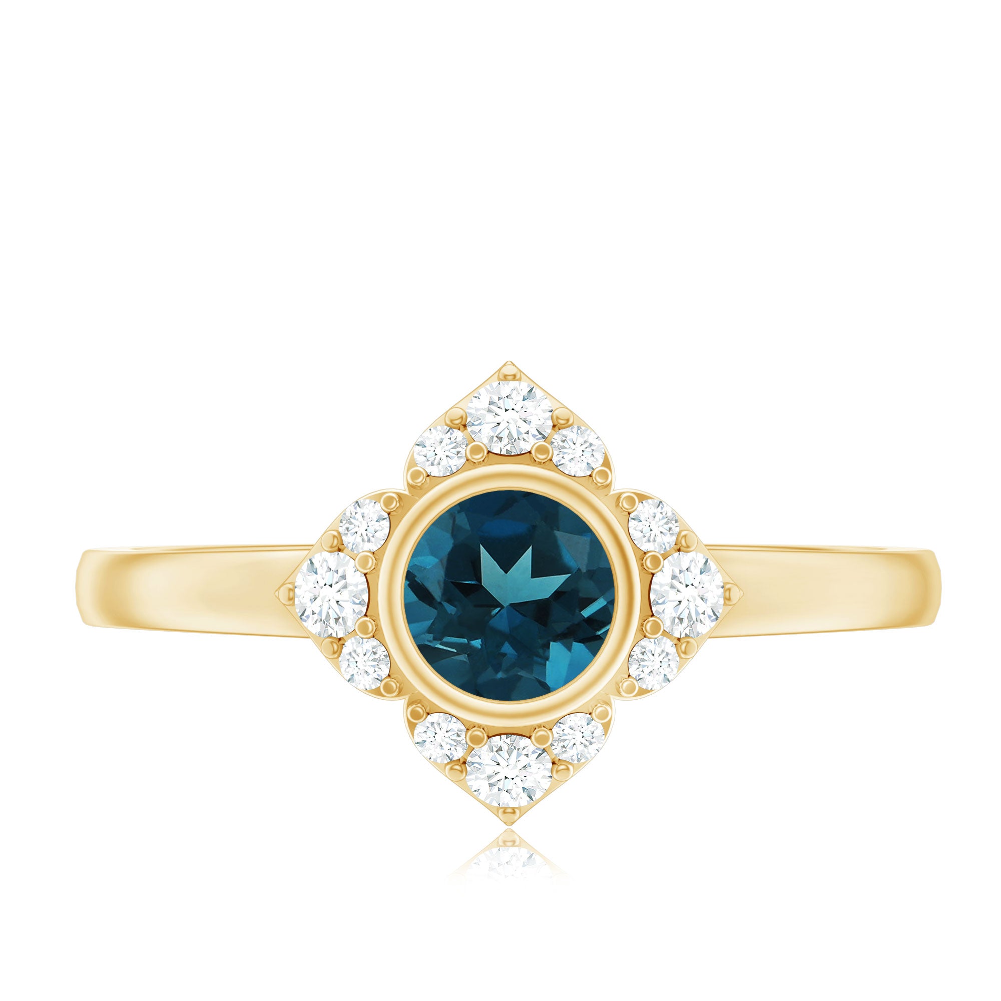 London Blue Topaz Bezel Engagement Ring with Diamond Halo