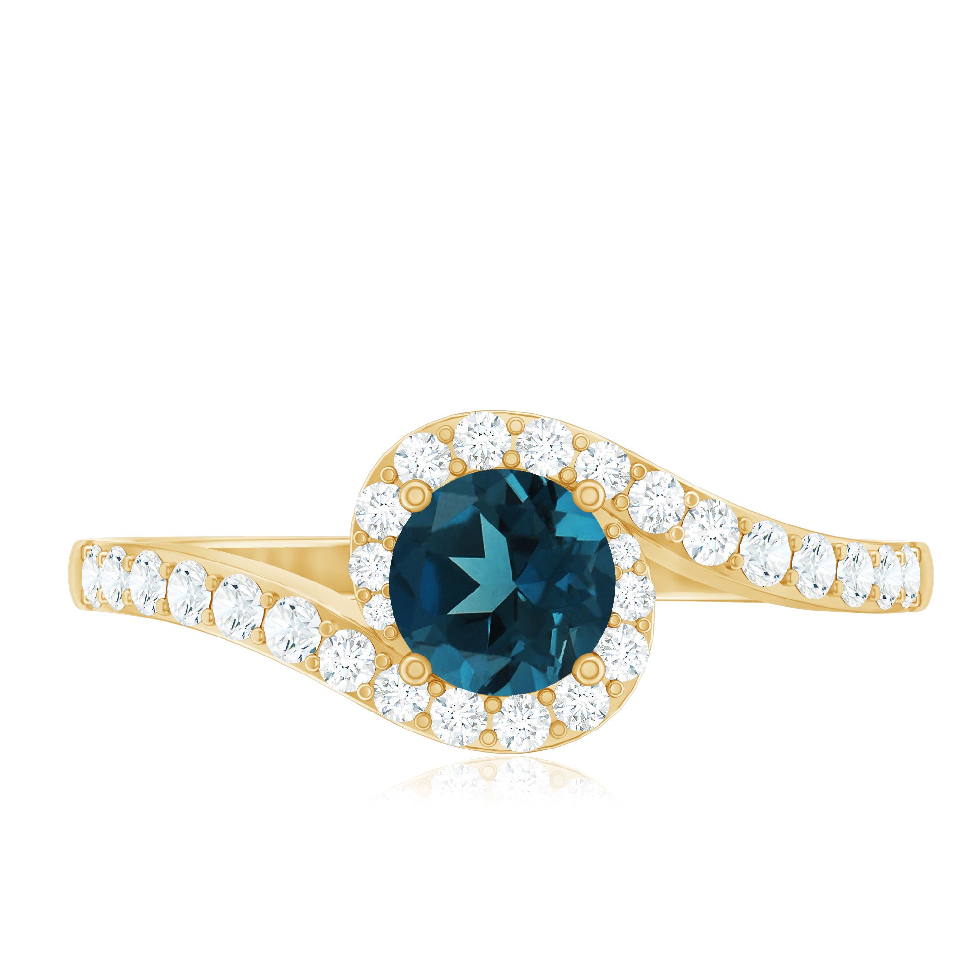 London Blue Topaz Bypass Promise Ring with Diamond Halo