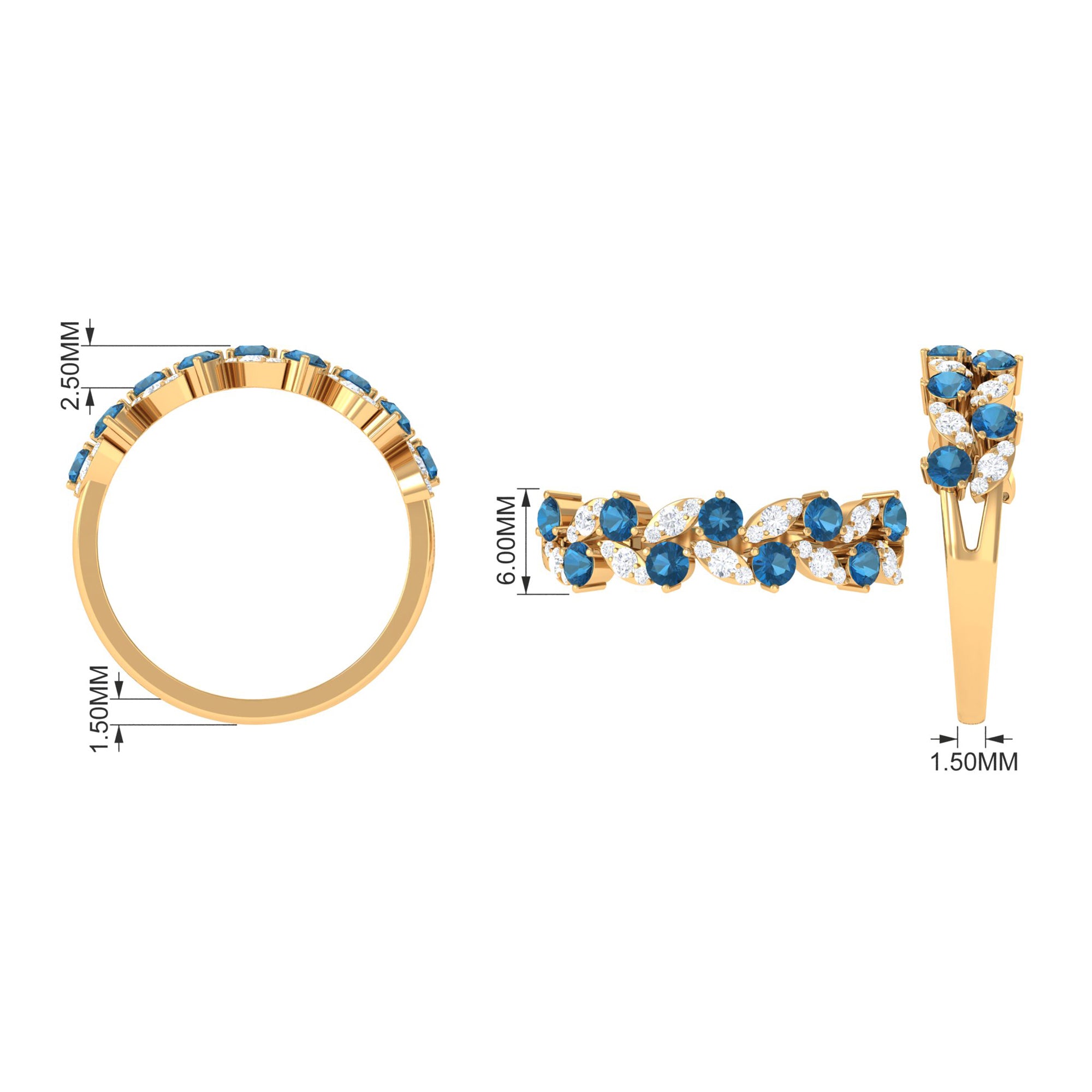 London Blue Topaz Nature Inspired Eternity Band with Diamond