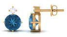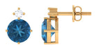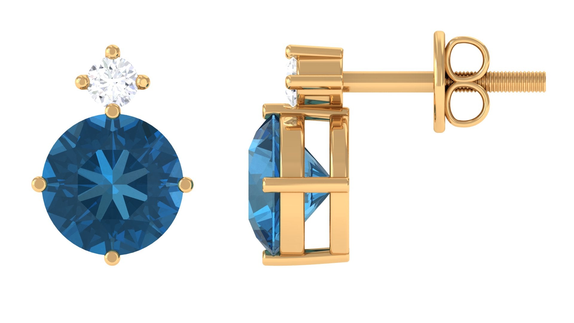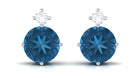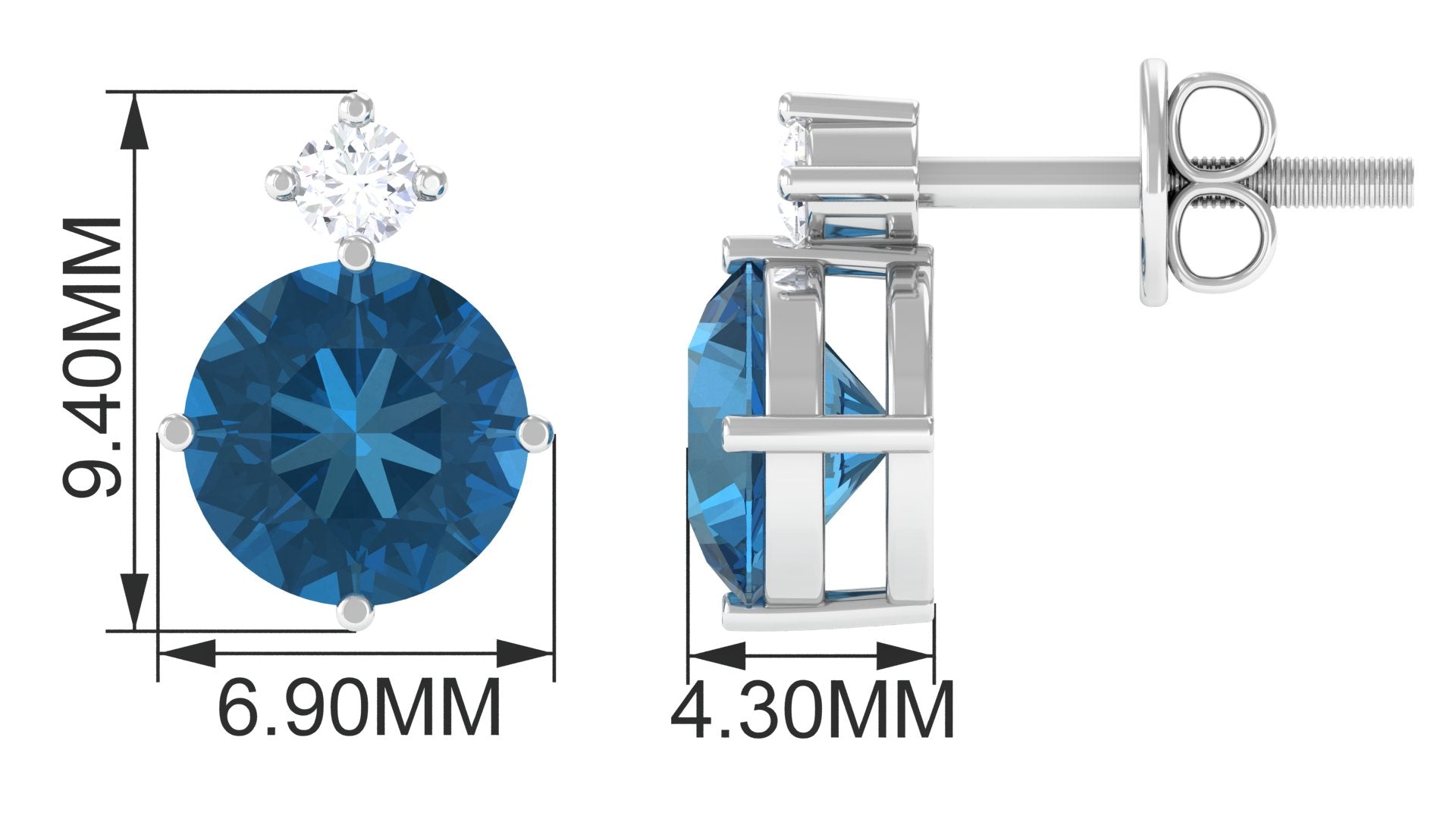 London Blue Topaz Solitaire Stud Earrings with Diamond