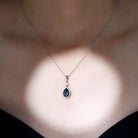 Enhance your style with this London Blue Topaz Pendant, expertly crafted from 14K white gold plated silver. The pendant showcases a 7X10 MM pear-shaped London blue topaz encircled by round cut moissanite stones, elegantly hanging from a simple bail. The Teardrop Wedding Necklace radiates the luxurious shimmer of London blue topaz, effortlessly drawing attention to the wearer, while the sparkling Moissanite beautifully complements the deep blue hue. This Drop Pendant Necklace features the timeless brilliance of AAA Quality topaz and D color with VS1 clarity moissanite, making it an ideal accessory for your special day. A cable chain supports the Pendant, allowing for comfortable wear and the option to layer with another necklace. This Pear Shaped Necklace will arrive in premium packaging along with a certificate of authenticity.