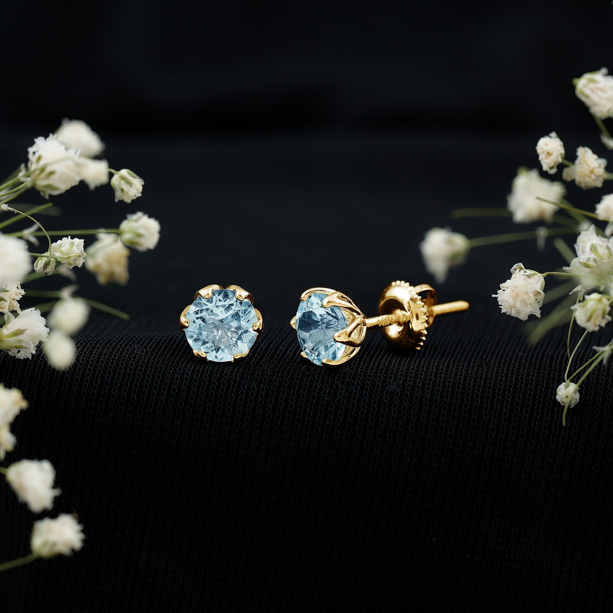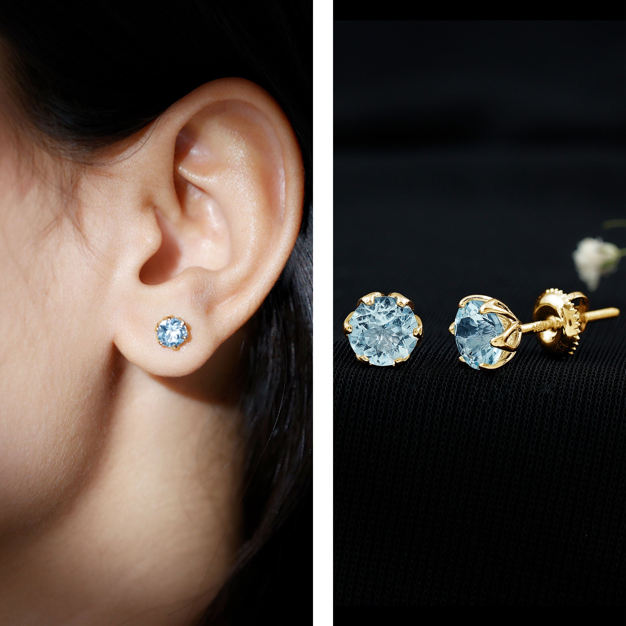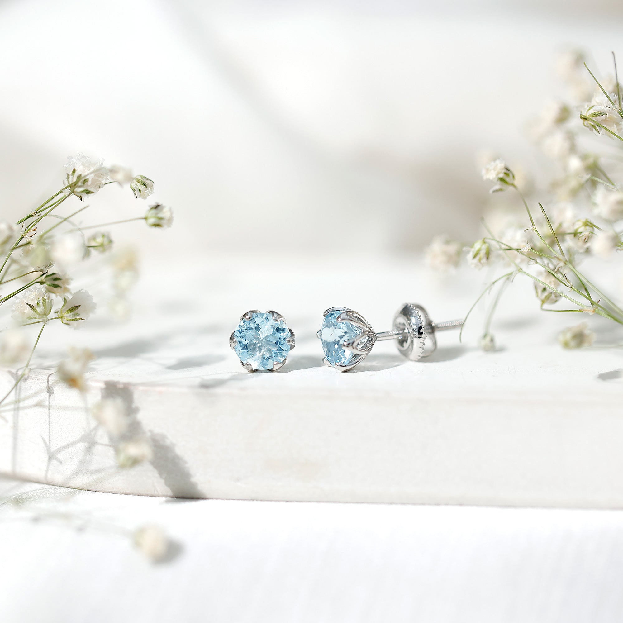 Celebrate the power of feminism and treat yourself with these gorgeous Aquamarine Stud Earrings. The Solitaire Stud Earrings are embellished with 6 MM Round shaped Aquamarine, beautifully set in Lotus Basket Setting. Aquamarine is known for its calming and soothing energy, often associated with clarity, courage, and emotional balance. These Aquamarine Earrings make a thoughtful and meaningful gift, especially for anyone born in March, as aquamarine is the birthstone for the month. The screw back closure ensures a snug and comfortable fit, allowing you to wear them all day with ease. Their understated style adds a subtle sparkle while maintaining a graceful charm that suits any wearer. Perfect for birthdays, anniversaries, or simply as a thoughtful gesture, these Real Aquamarine Earrings arrive in a lovely jewelry box, ready to gift. They also make a delightful addition to your own collection, bringing a touch of elegance and meaningful symbolism to daily wear. These March Birthstone Earrings are a cherished piece that will be treasured for years, combining beauty, comfort, and thoughtful intention in one stunning accessory.