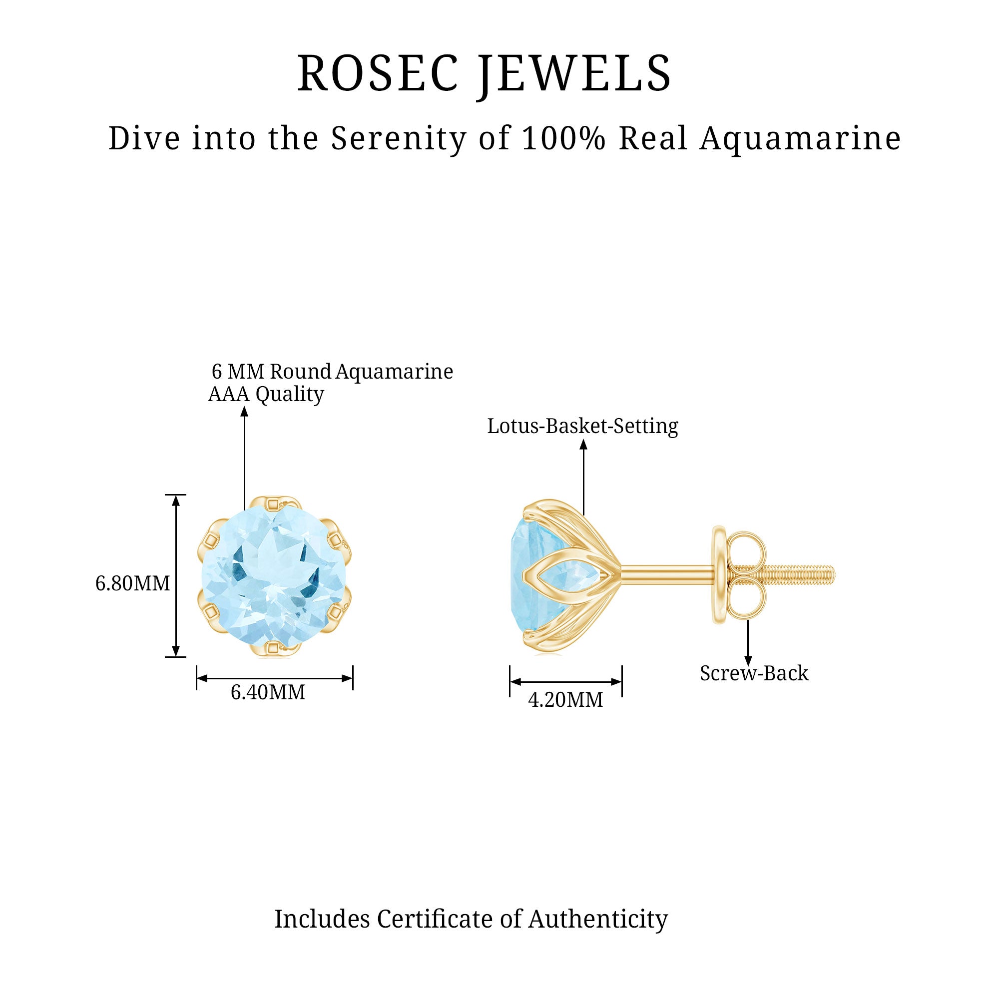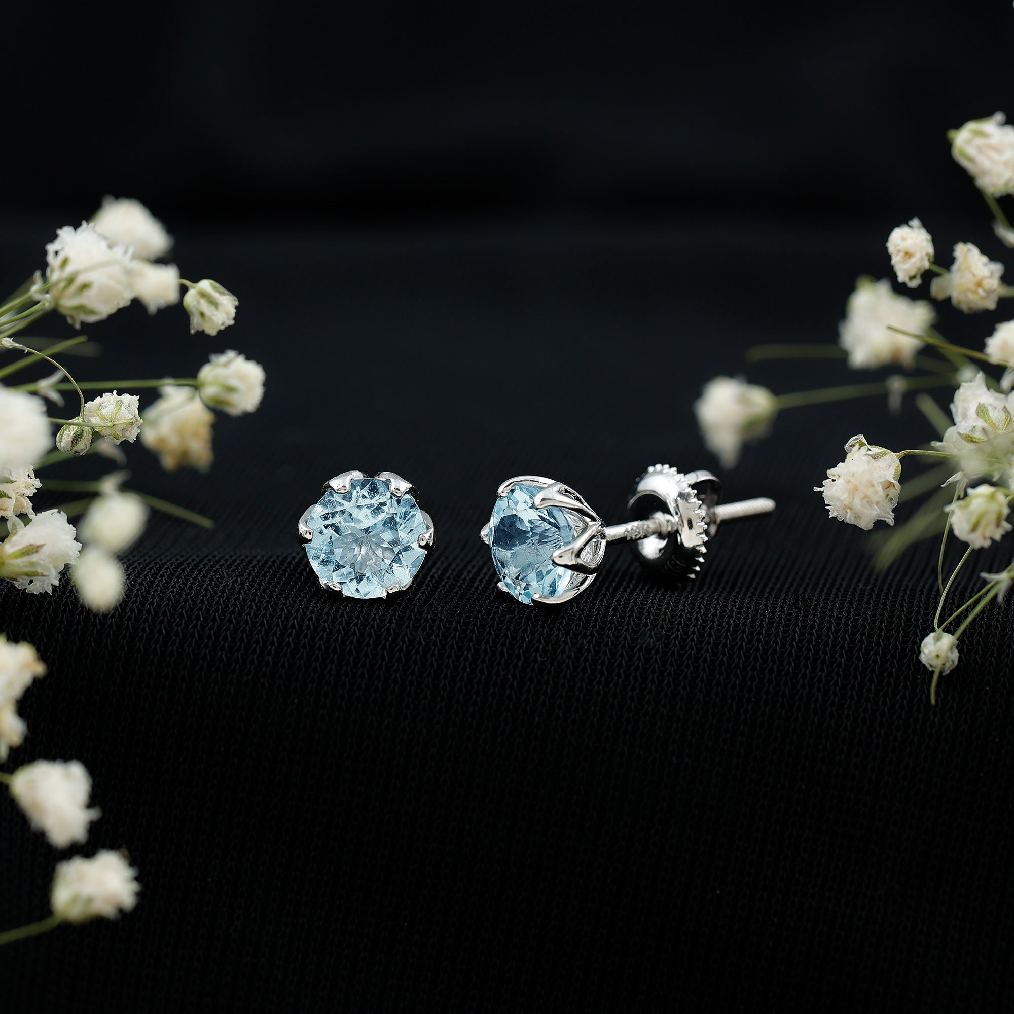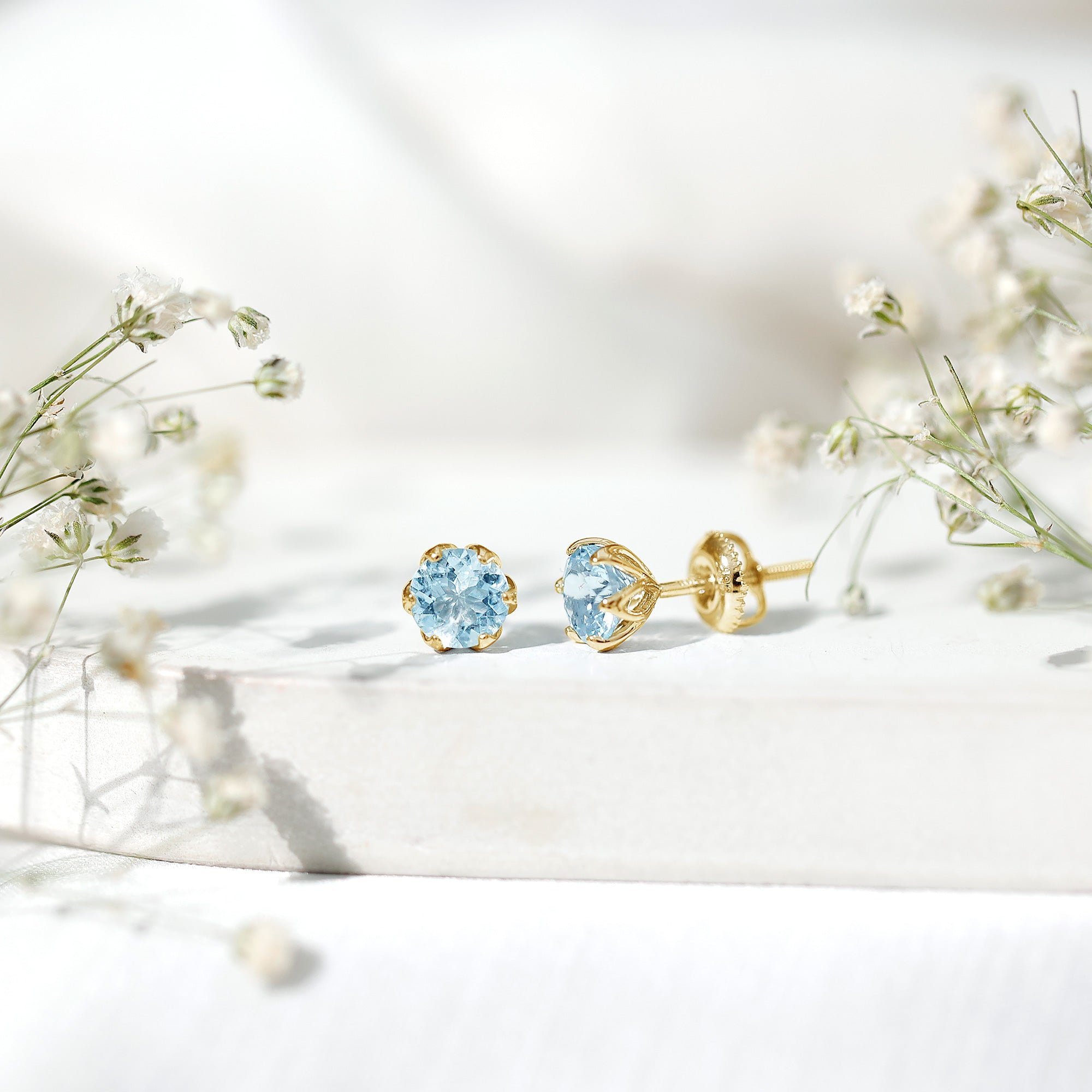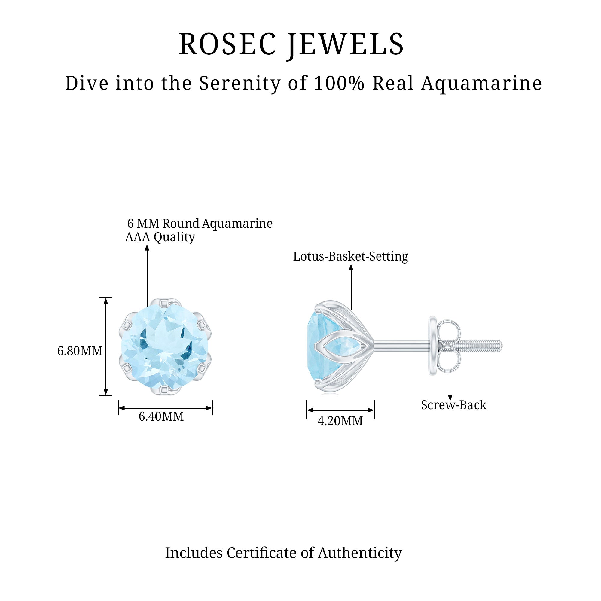 Celebrate the power of feminism and treat yourself with these gorgeous Aquamarine Stud Earrings. The Solitaire Stud Earrings are embellished with 6 MM Round shaped Aquamarine, beautifully set in Lotus Basket Setting. Aquamarine is known for its calming and soothing energy, often associated with clarity, courage, and emotional balance. These Aquamarine Earrings make a thoughtful and meaningful gift, especially for anyone born in March, as aquamarine is the birthstone for the month. The screw back closure ensures a snug and comfortable fit, allowing you to wear them all day with ease. Their understated style adds a subtle sparkle while maintaining a graceful charm that suits any wearer. Perfect for birthdays, anniversaries, or simply as a thoughtful gesture, these Real Aquamarine Earrings arrive in a lovely jewelry box, ready to gift. They also make a delightful addition to your own collection, bringing a touch of elegance and meaningful symbolism to daily wear. These March Birthstone Earrings are a cherished piece that will be treasured for years, combining beauty, comfort, and thoughtful intention in one stunning accessory.