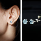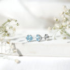 Lotus Basket Set Aquamarine Stud Earrings for Her