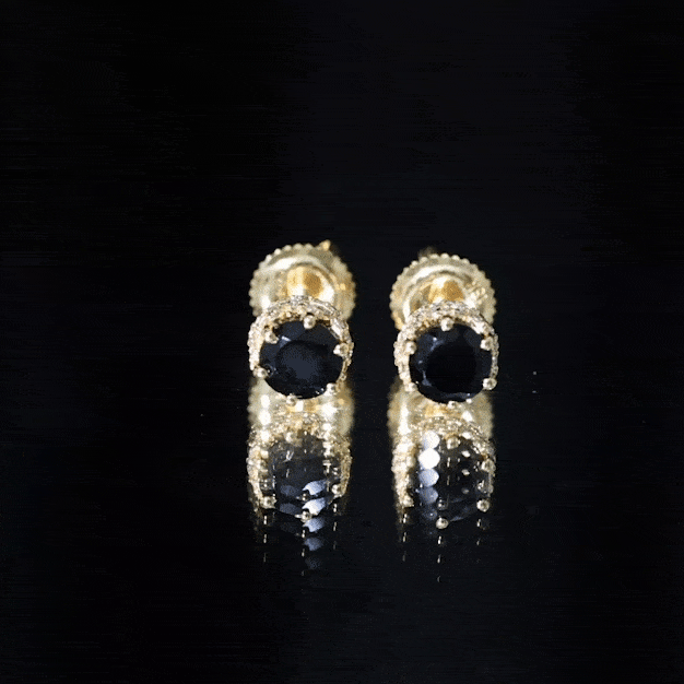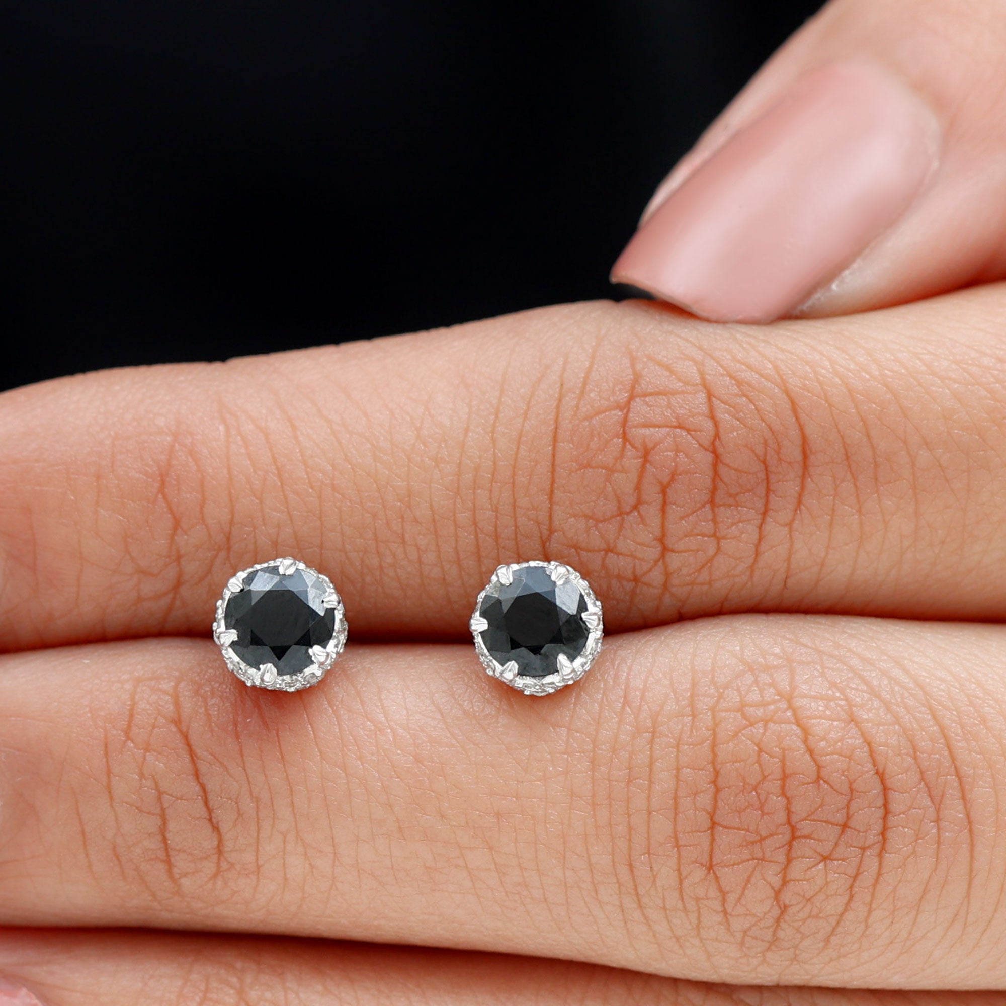 Enhance your Beauty with these Solitaire Stud Earrings embellished with Round Shape Black Onyx set as Solitaire in Lotus basket Setting and round shape Diamond is set in Decorative Setting.