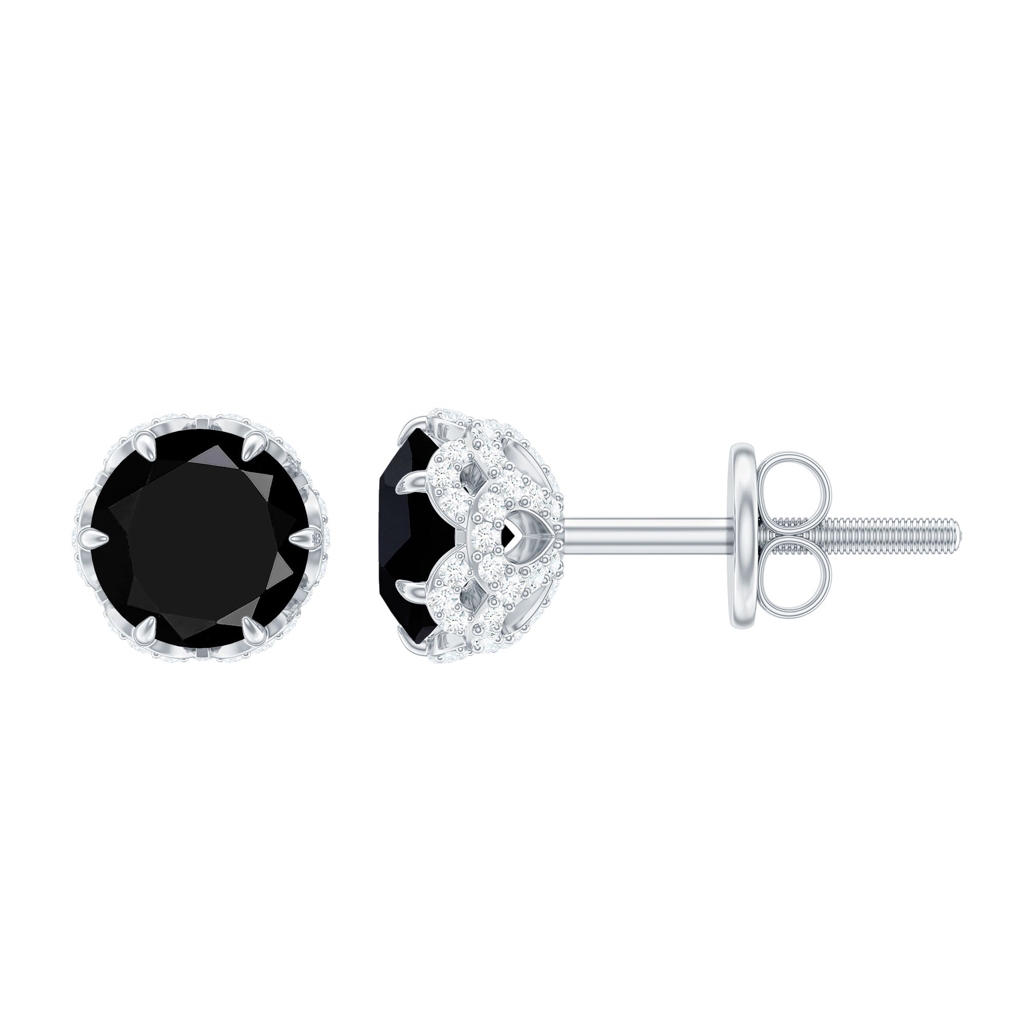 Lotus Basket Set Black Onyx Solitaire Stud Earrings with Diamond Accent