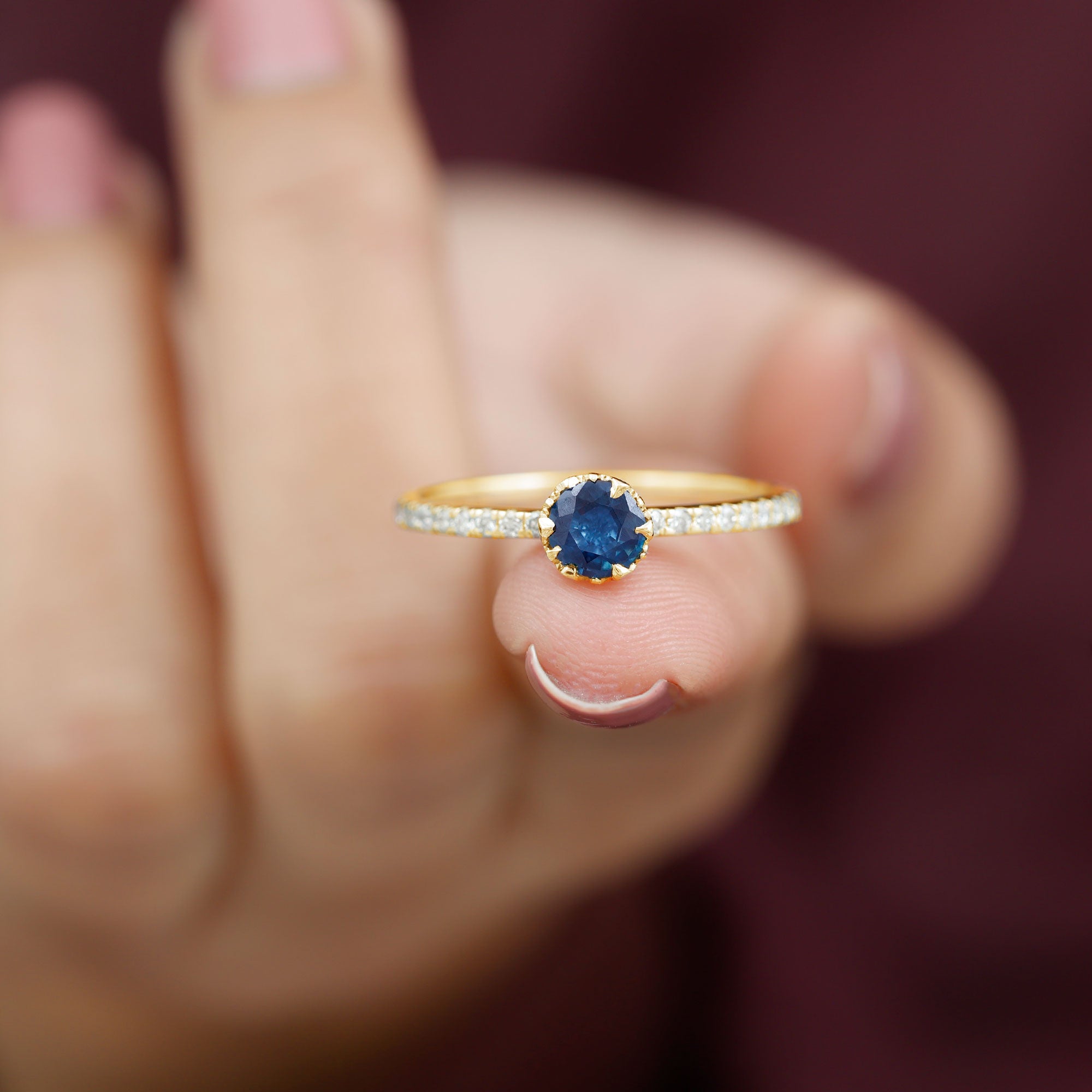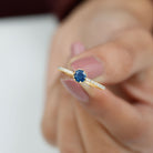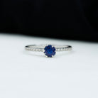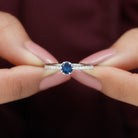 Celebrate the unspoken bond between two hearts with this stunning Blue Sapphire Ring, a dazzling emblem of love and commitment. Whether marking the beginning of something beautiful or a lasting connection this Sapphire Proposal Ring is the perfect symbol of your promise to always be there for each other, through every chapter of life. This ring is adorned with 5 MM Round Shaped Blue Sapphire in a beautiful setting with Diamond as Side Stones adorning the shank. Add the right amount of brilliance and sparkle with this Pre Engagement Ring making it a true statement of love that is enduring. Crafted with precision and care this Sapphire and Diamond Ring captures heart and a promise to cherish.
