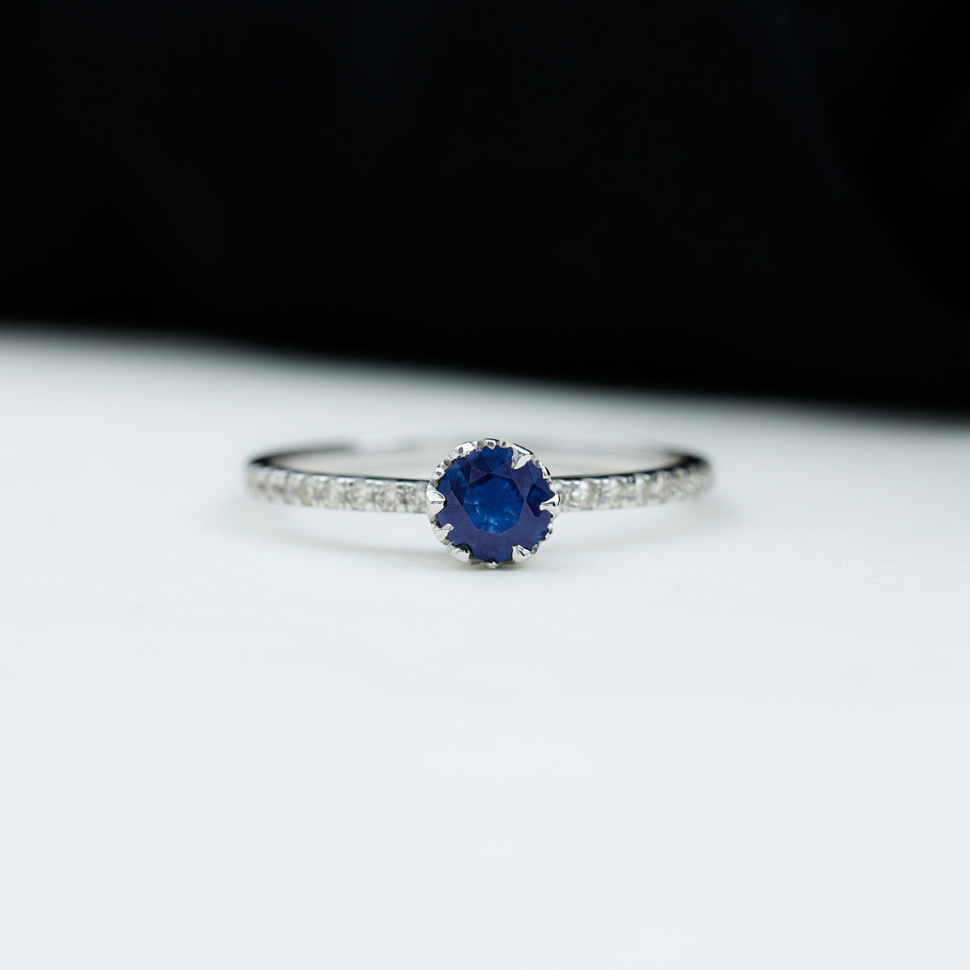 Lotus Basket Set Blue Sapphire Solitaire Ring with Diamond